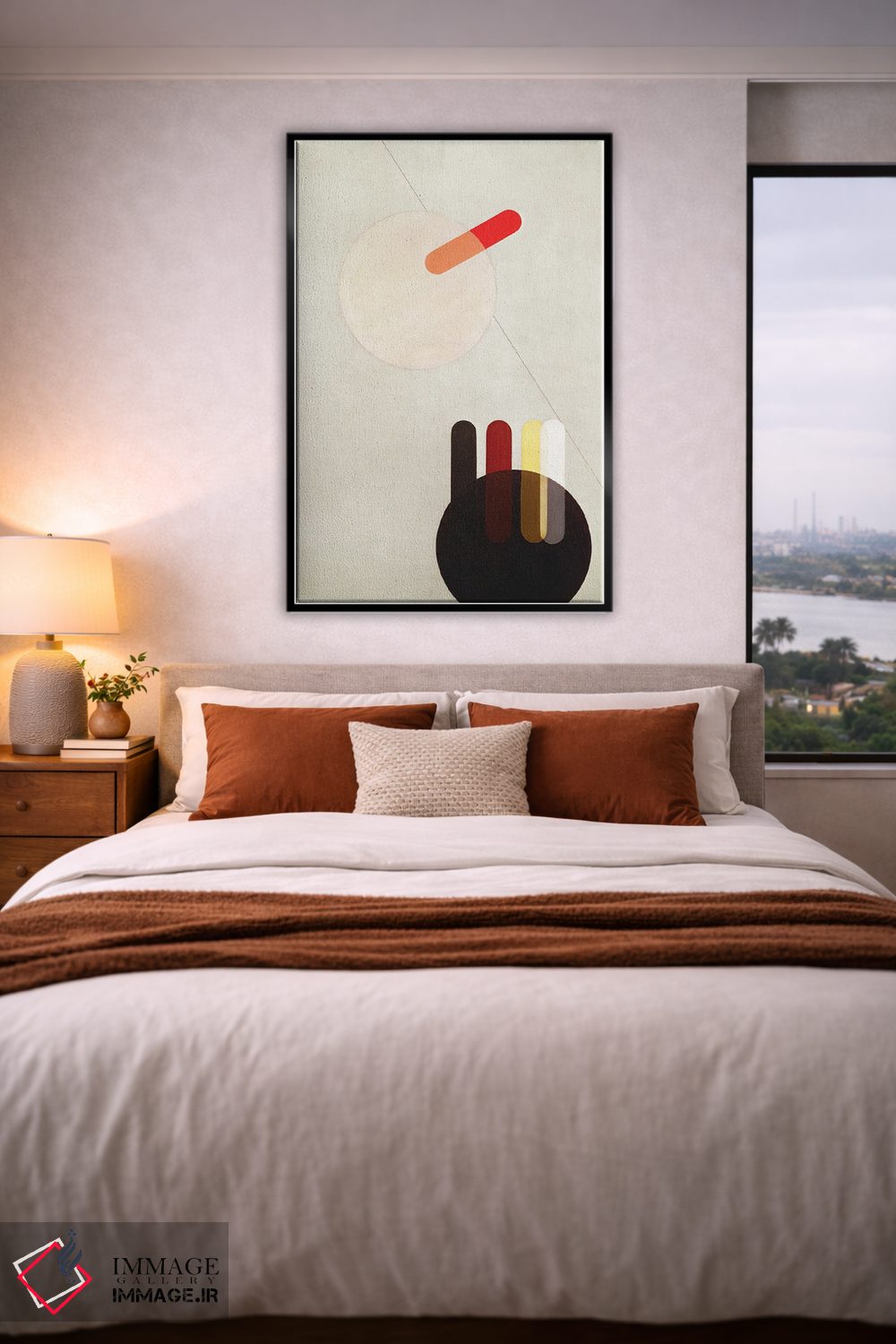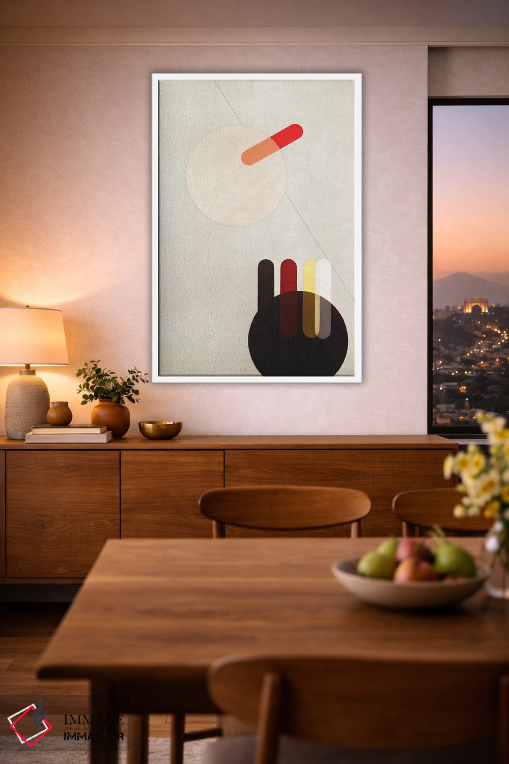 براساس پالت گرم اثر، قاب تیک گرم (چوبی) پیشنهاد اول است و مشکی مات (فریم متوسط) مکمل. برای سفارشهای پروژهای با ابعاد و قابهای اختصاصی با ایماژ در تماس باشید.