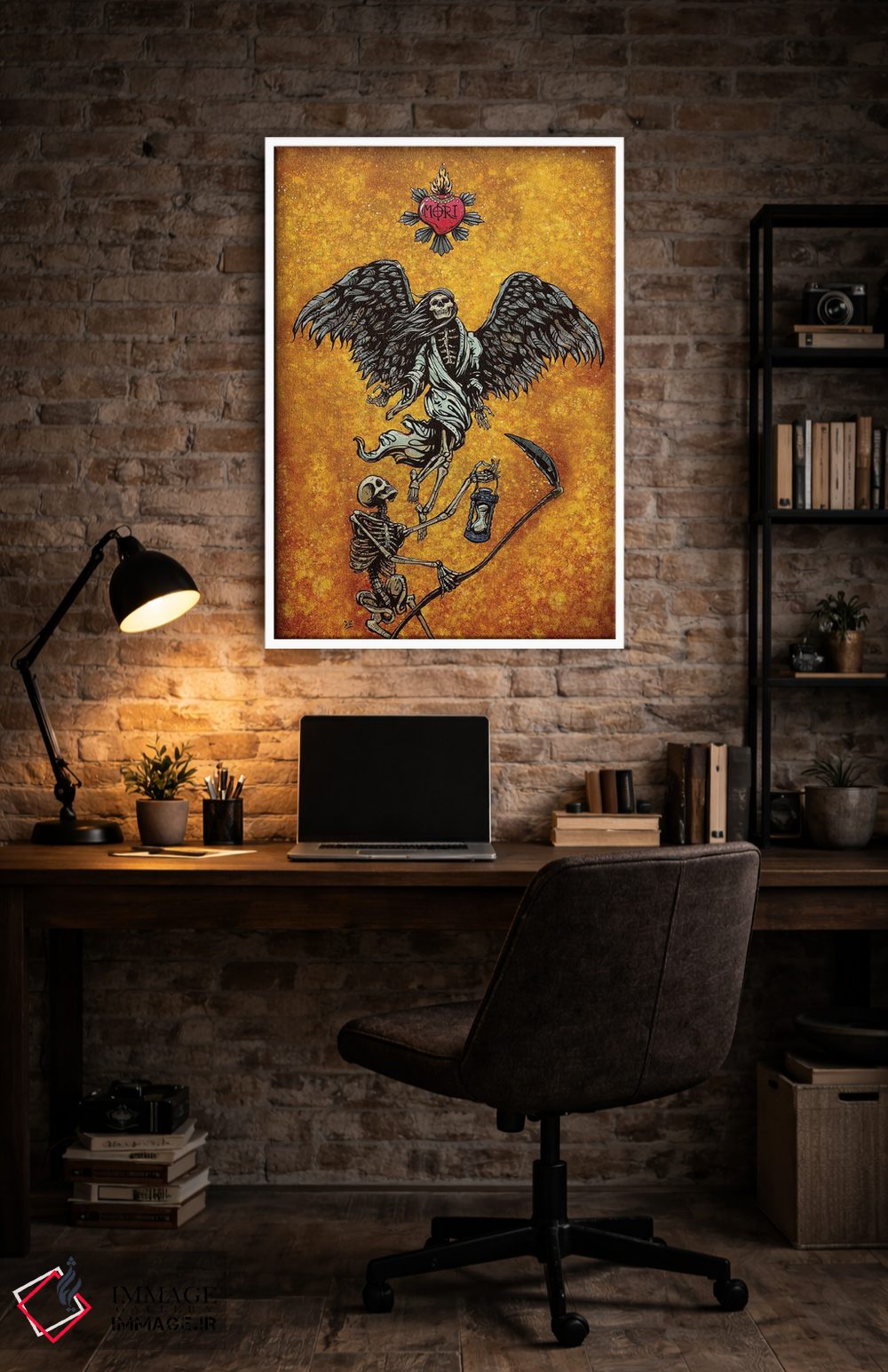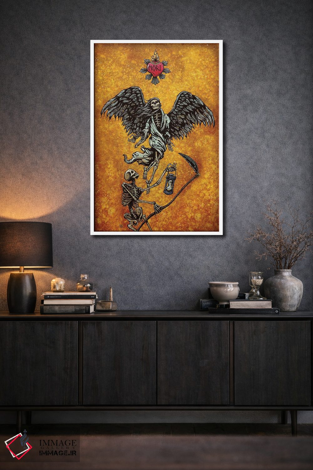 در یک جمله، «مرگ منتظر هیچکس نمیماند» اثرِ «دیوید لوزو» جلوهٔ دیوار را منسجمتر میکند؛ برای فضاهای مدرن با خطوط ساده پیشنهاد میشود. در کنار گیاهان آپارتمانی هم جلوهٔ لطیفی پیدا میکند.