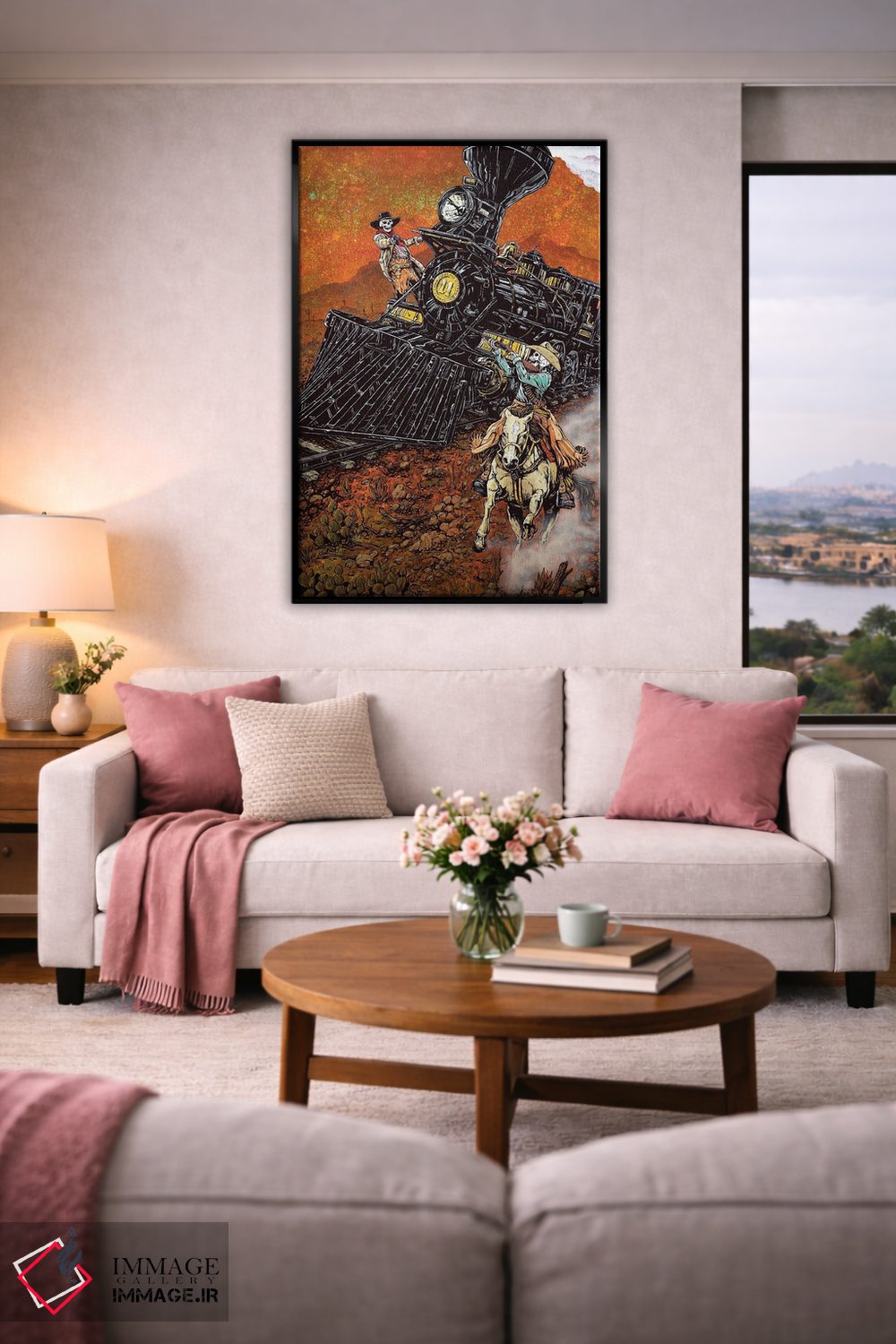این اثرِ «دیوید لوزو» با رویکرد پرداختِ هنری و تم این اثر، برای ستکردن با اکسسوریهای ساده (کوسن، گلدان، فرشهای روشن) عالی است.