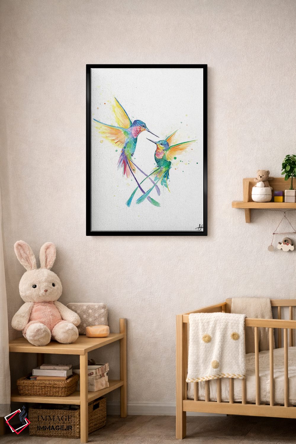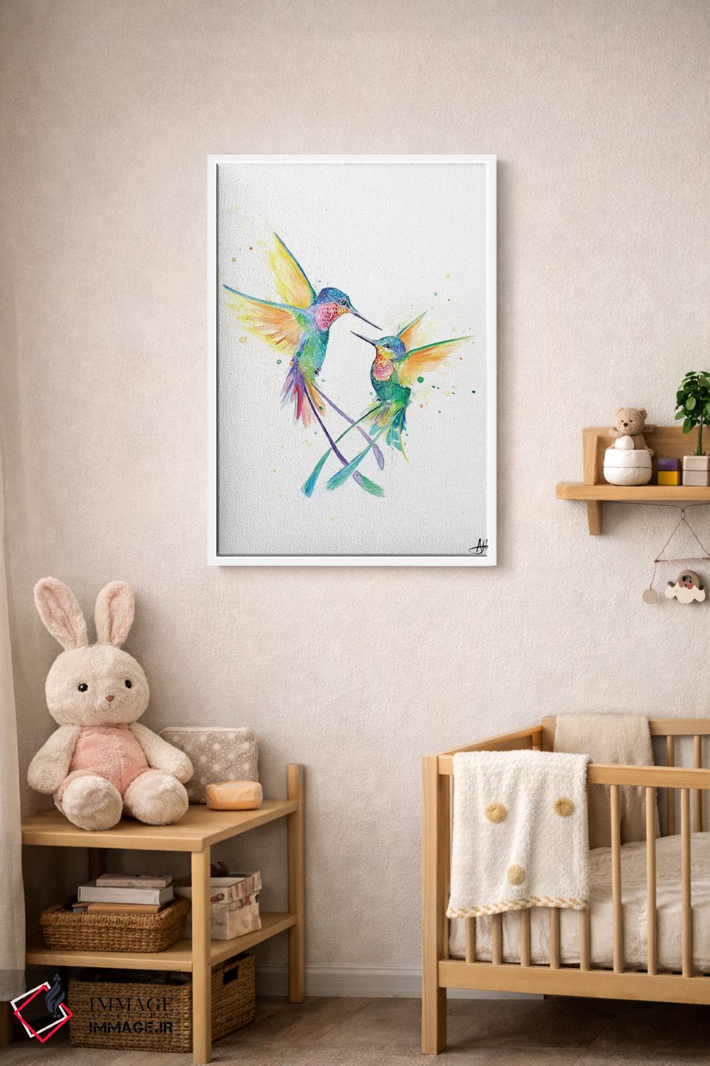 برای دیوارهای ساده، «مرغ مگسخوار شاد» اثرِ «مارک آلانته» به فضا، گرمیِ ملایم اضافه میکند؛ برای خانههایی با چوب و پارچههای گرم انتخابی خوشسلیقه است. هر بار نگاهش میکنید، یک جزئیات تازه به چشم میآید.