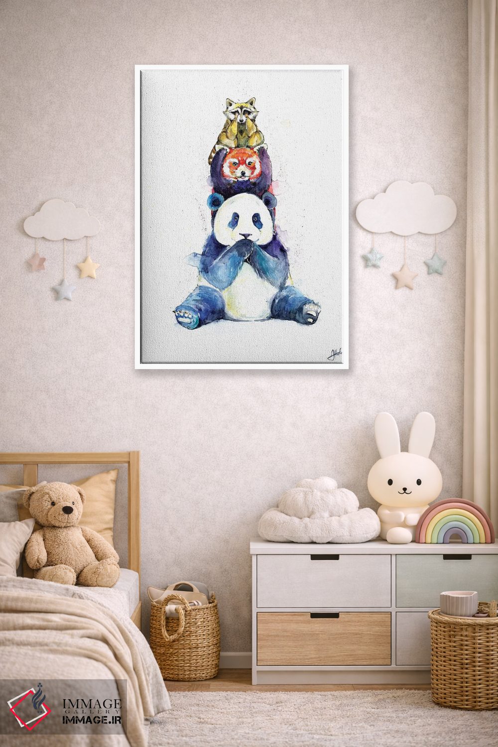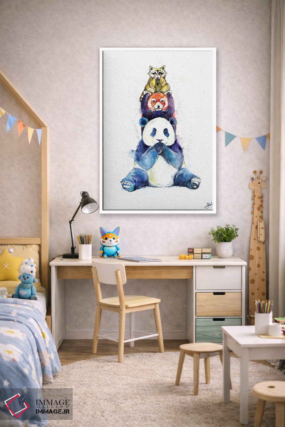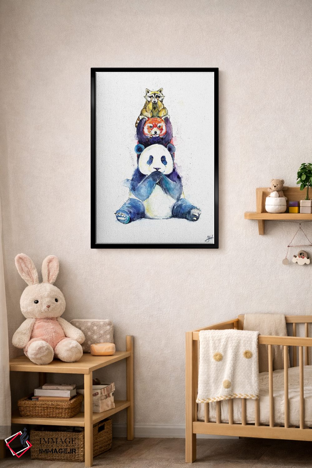 برای اتاقی که به یک عنصر دوستداشتنی نیاز دارد، «پانداهای شلوغ» اثرِ «مارک آلانته» فضا را صمیمیتر و دعوتکنندهتر نشان میدهد؛ برای خانههایی با چوب و پارچههای گرم انتخابی خوشسلیقه است. با قاب چوبی یا مشکی، حس مرتبتری پیدا میکند.