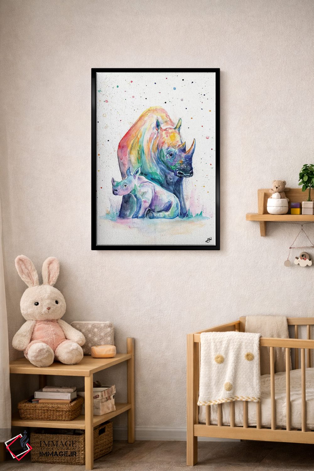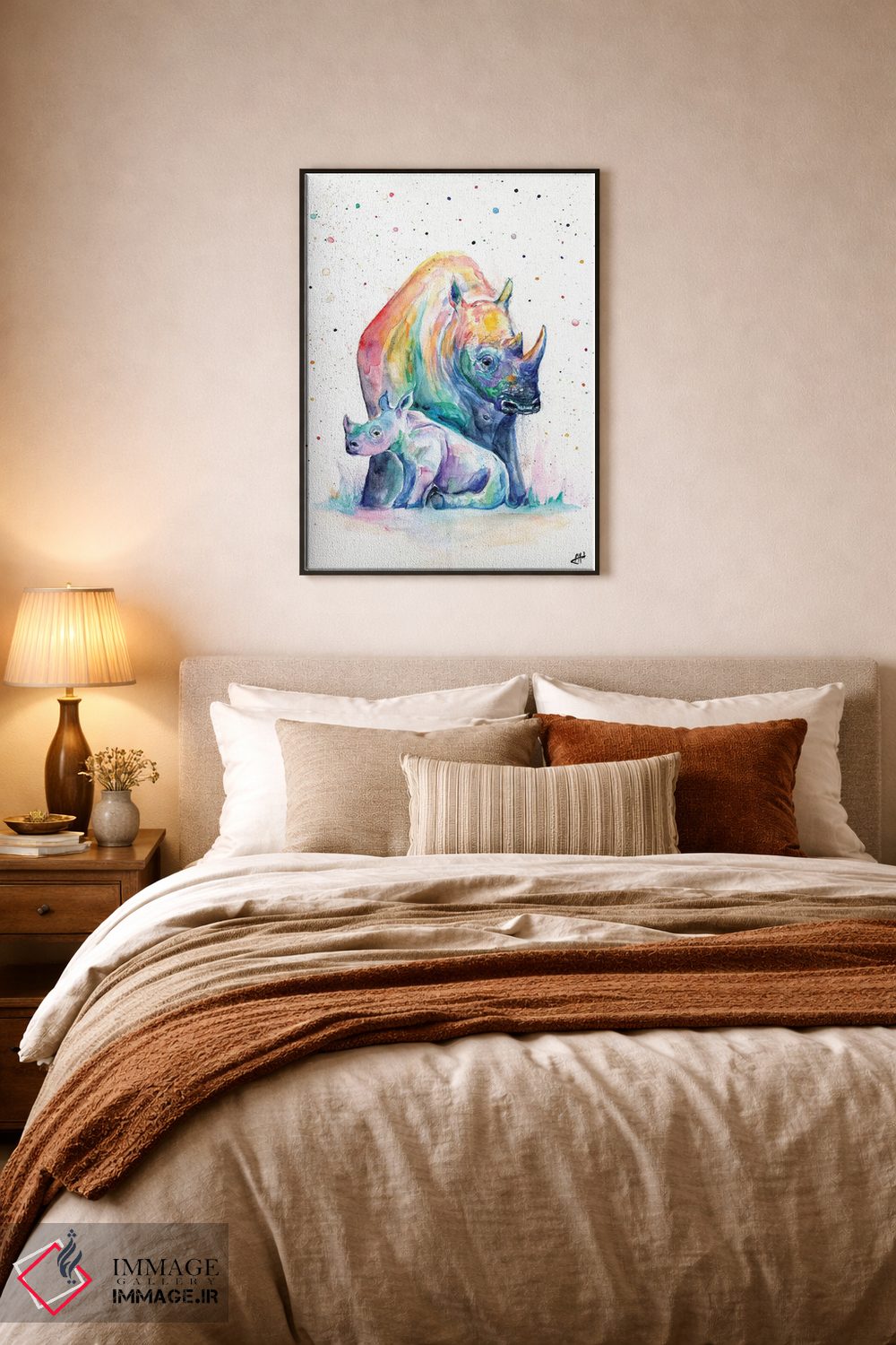 براساس پالت ترکیبی اثر، قاب تیک گرم (چوبی) پیشنهاد اول است و مشکی مات (فریم متوسط) مکمل. برای سفارشهای پروژهای با ابعاد و قابهای اختصاصی با ایماژ در تماس باشید.