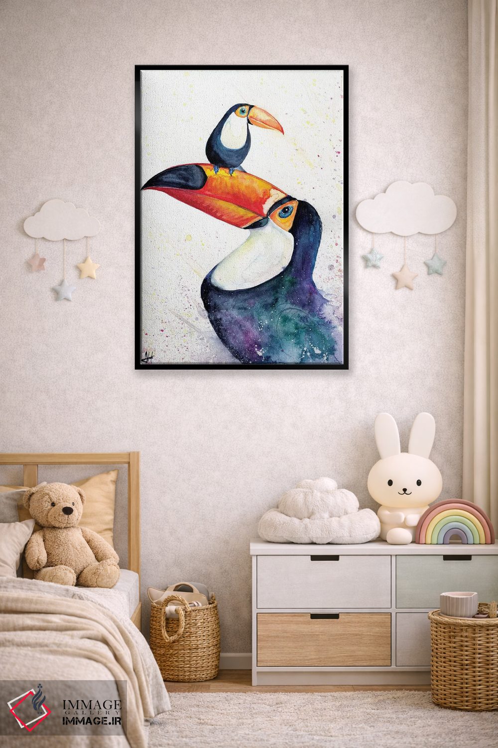 اگر به آثار حیوانات علاقه دارید، «توکان هم میتواند این بازی را انجام دهد (بازی با واژه، اشاره به پرنده توکان)» اثرِ «مارک آلانته» بدون کودکانه شدن، بازیگوش و خوشپرداخت میماند، برای خانههایی با چوب و پارچههای گرم گزینهٔ مناسبیست. برای دیوار گالریوار هم گزینهٔ خوبیست.