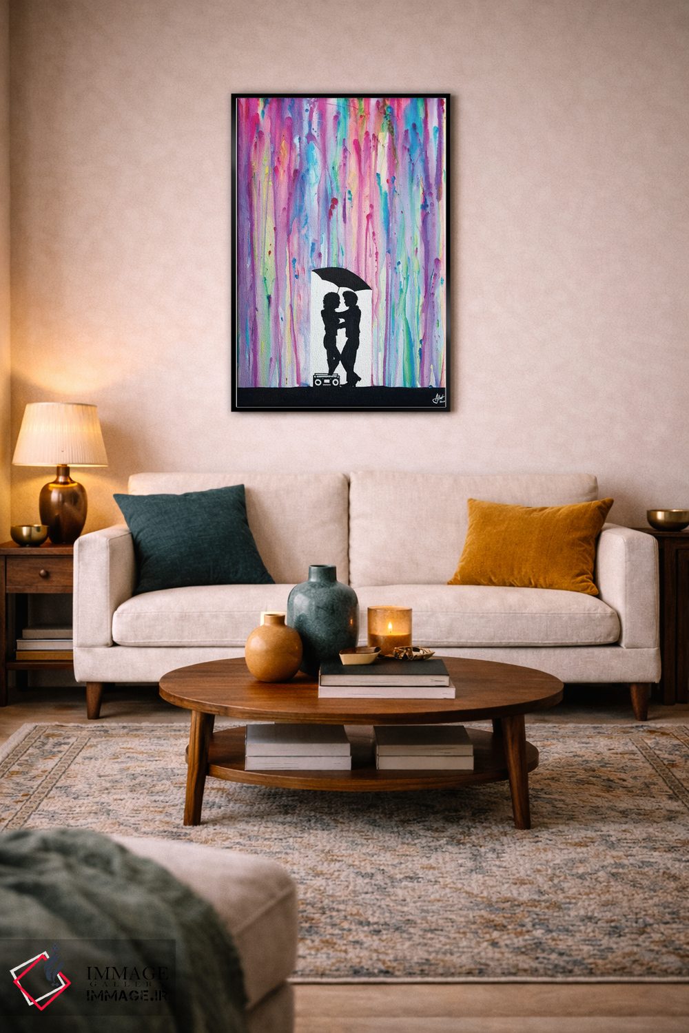 براساس پالت ترکیبی اثر، قاب تیک گرم (چوبی) پیشنهاد اول است و مشکی مات (فریم متوسط) مکمل. برای سفارشهای پروژهای با ابعاد و قابهای اختصاصی با ایماژ در تماس باشید.