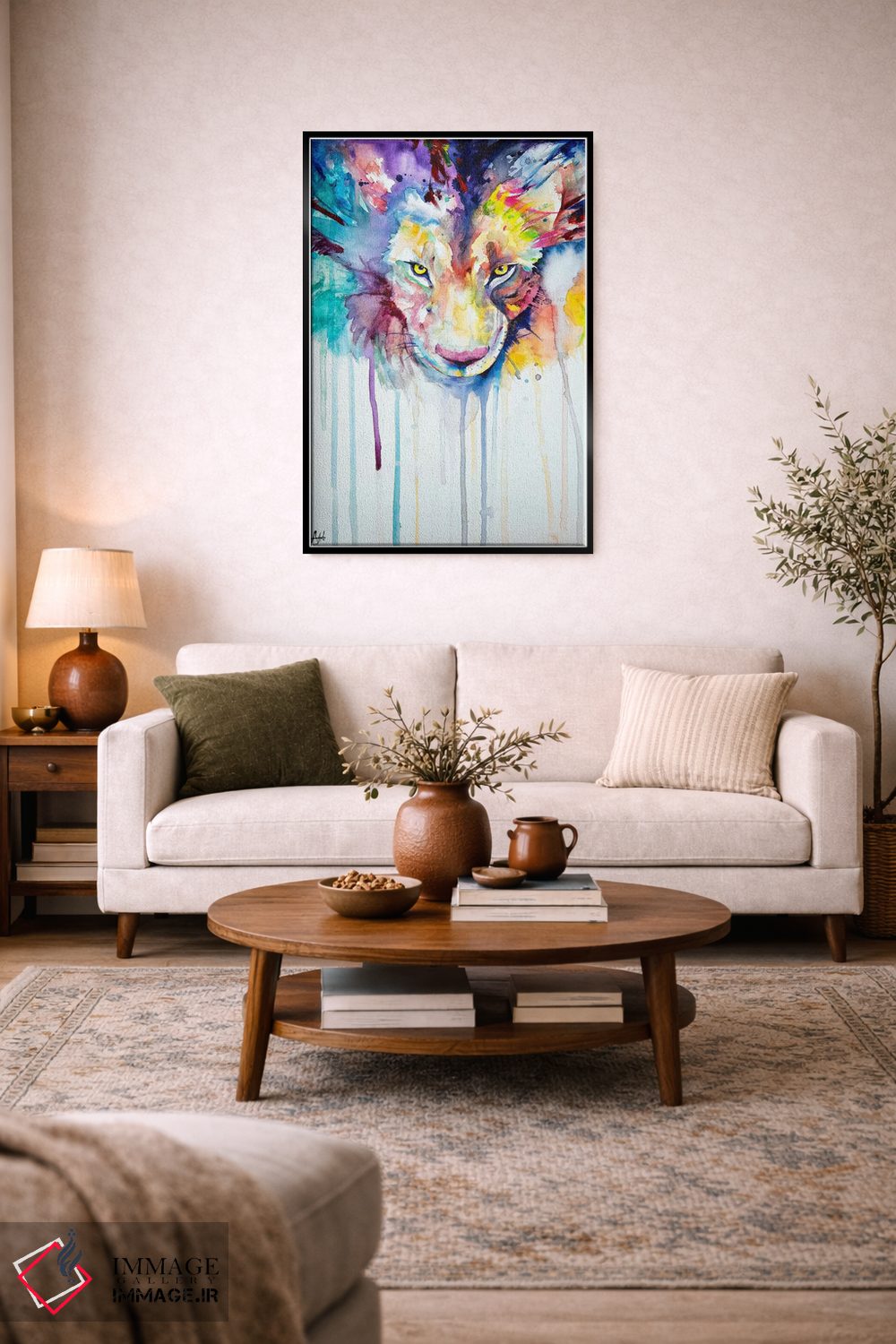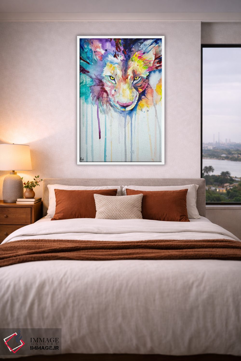 براساس پالت ترکیبی اثر، قاب تیک گرم (چوبی) پیشنهاد اول است و مشکی مات (فریم متوسط) مکمل. برای سفارشهای پروژهای با ابعاد و قابهای اختصاصی با ایماژ در تماس باشید.