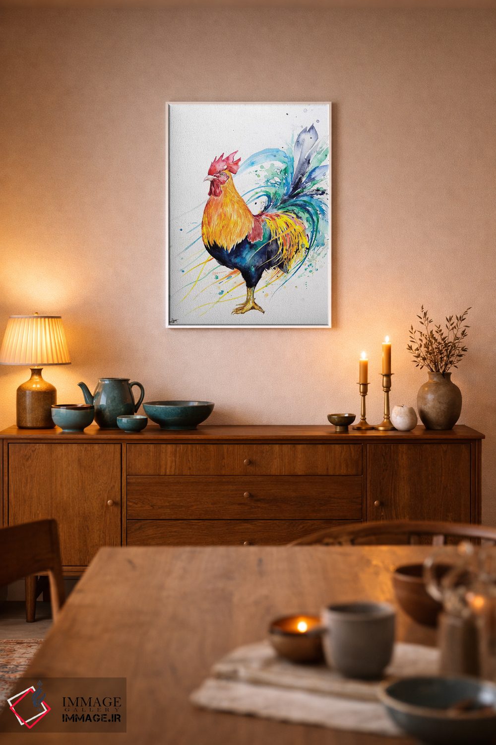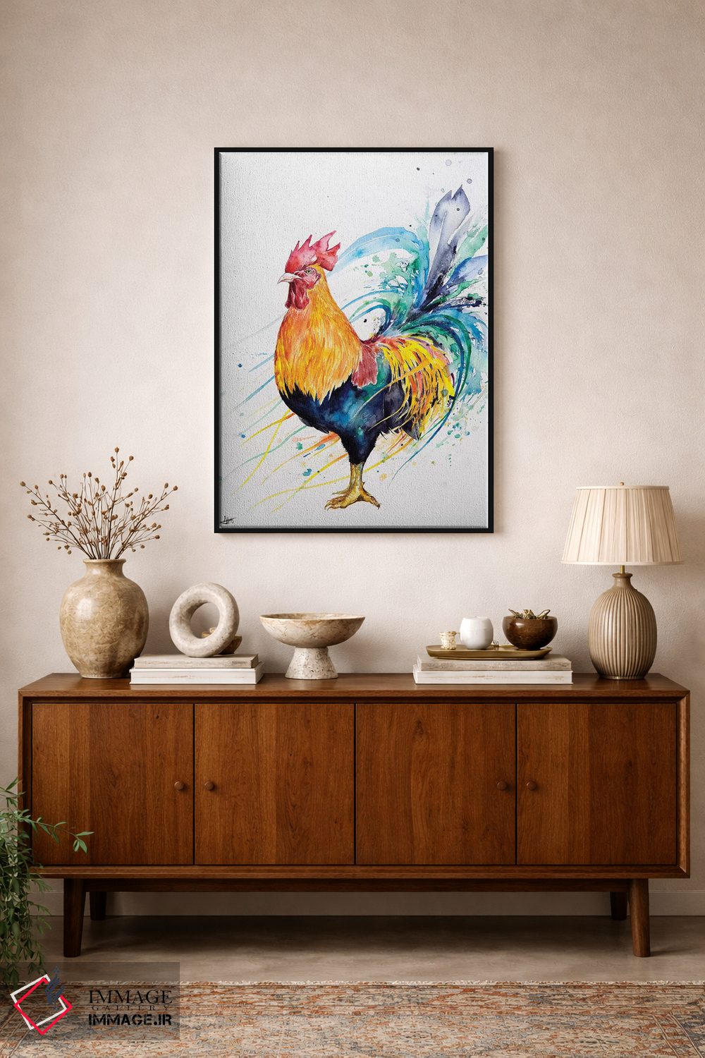 براساس پالت ترکیبی اثر، قاب تیک گرم (چوبی) پیشنهاد اول است و مشکی مات (فریم متوسط) مکمل. برای سفارشهای پروژهای با ابعاد و قابهای اختصاصی با ایماژ در تماس باشید.