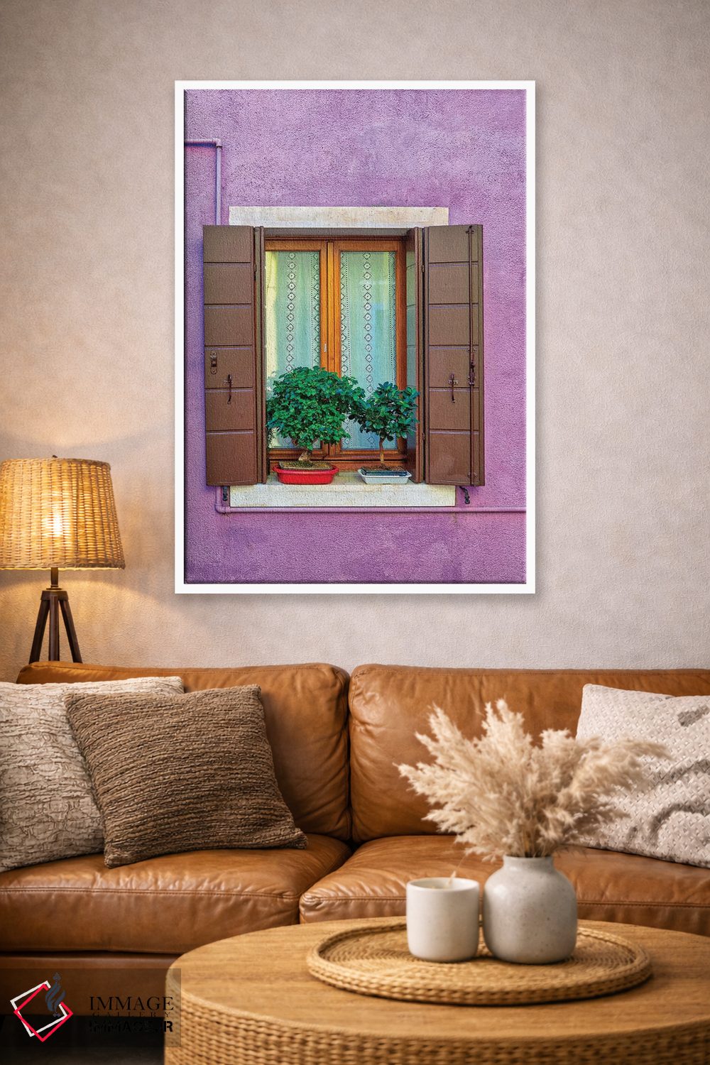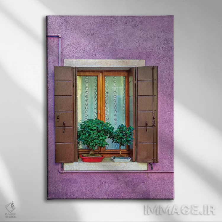 اگر دیوارِ راهرو یا گوشهی مطالعه نیاز به یک قاب خوشانرژی دارد، «پنجره بنفش در ونیز» اثرِ «مارکو کارماسی» با تم این اثر گزینهی مناسبی است.