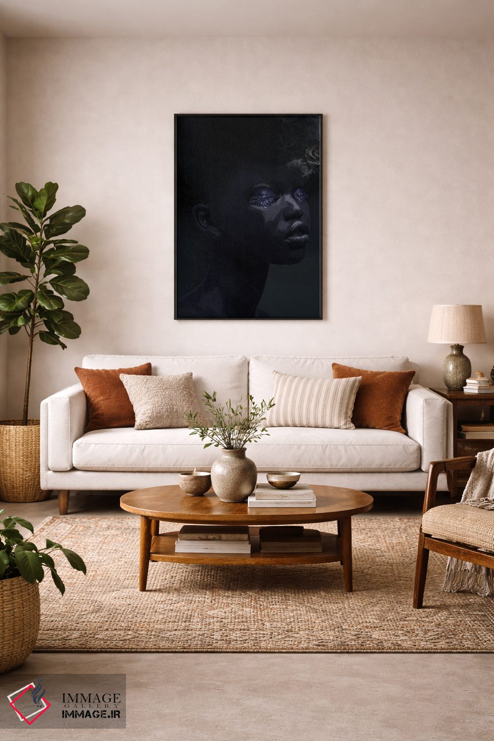 اگر محیط کمینهگرا است، مشکی را در فرش یا پرده (بهصورت خیلی کم) برگردانید تا فضا یکدستتر شود. انتخاب قاب هم میتواند این اکسنت را تقویت کند.