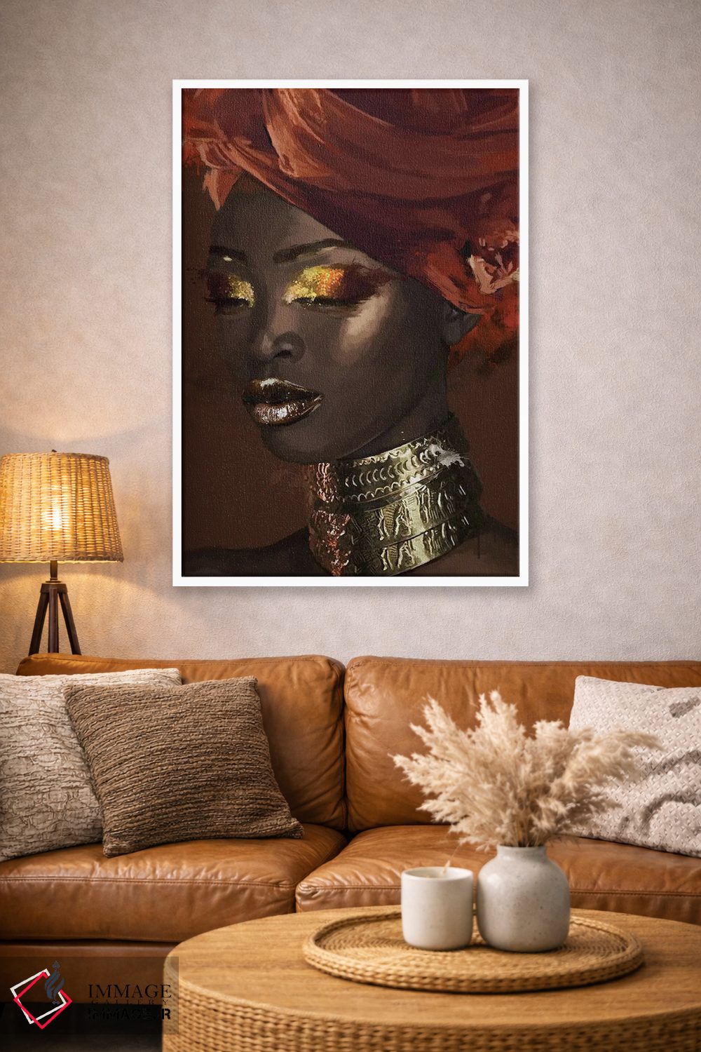 براساس پالت گرم اثر، قاب تیک گرم (چوبی) پیشنهاد اول است و مشکی مات (فریم متوسط) مکمل. برای سفارشهای پروژهای با ابعاد و قابهای اختصاصی با ایماژ در تماس باشید.