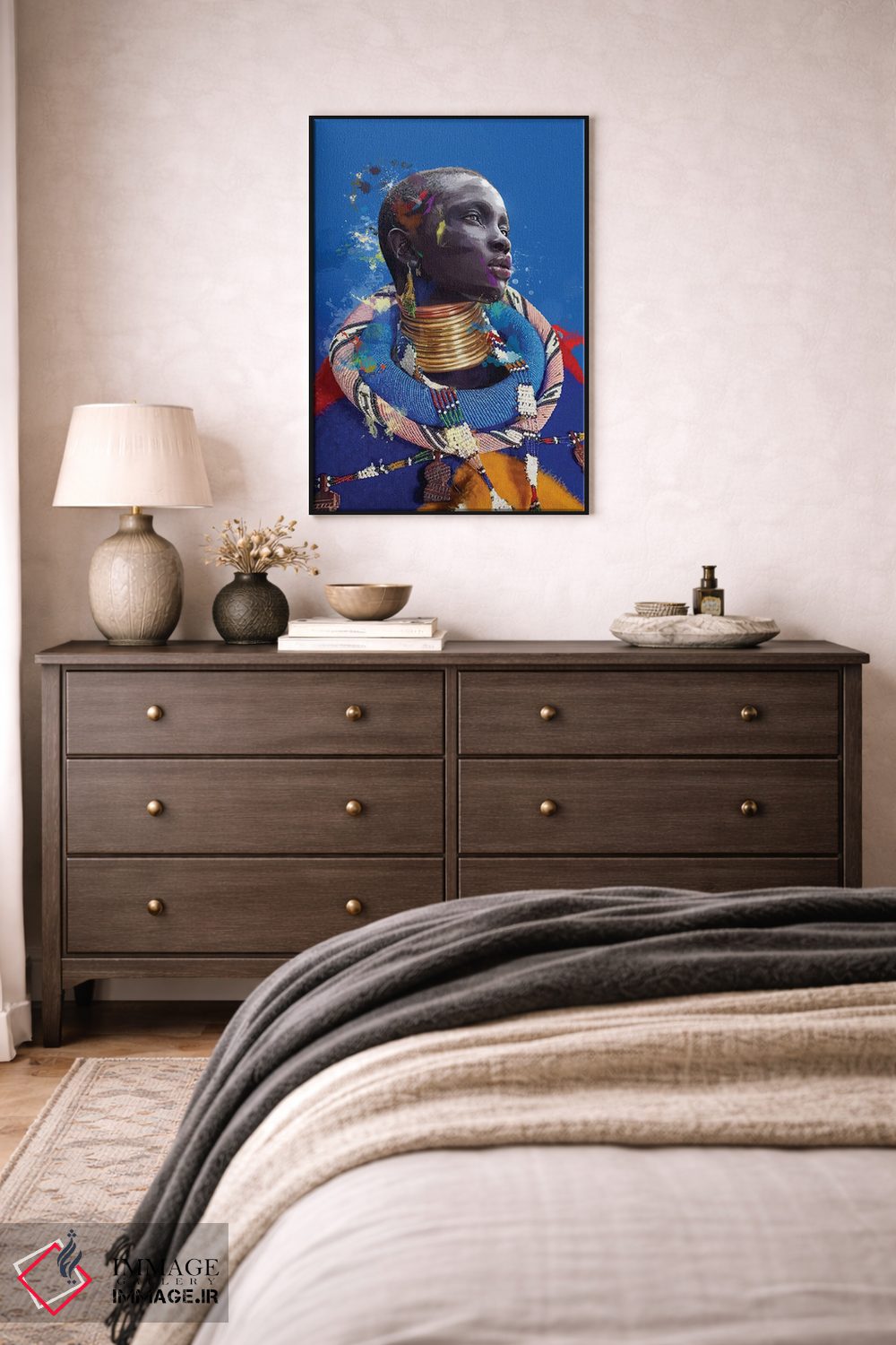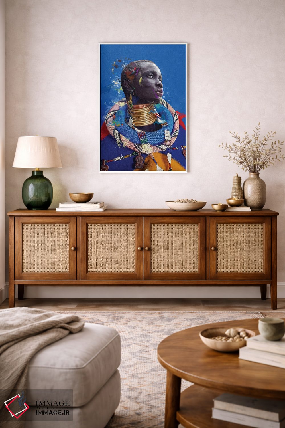 براساس پالت ترکیبی اثر، قاب تیک گرم (چوبی) پیشنهاد اول است و مشکی مات (فریم متوسط) مکمل. برای سفارشهای پروژهای با ابعاد و قابهای اختصاصی با ایماژ در تماس باشید.