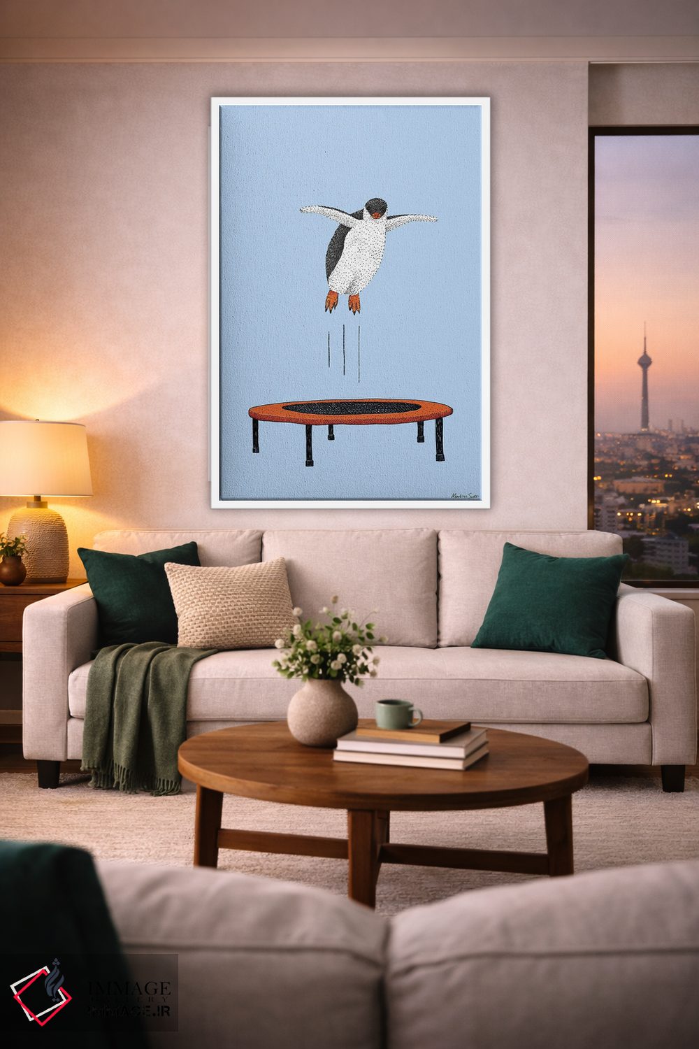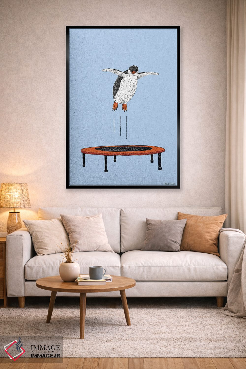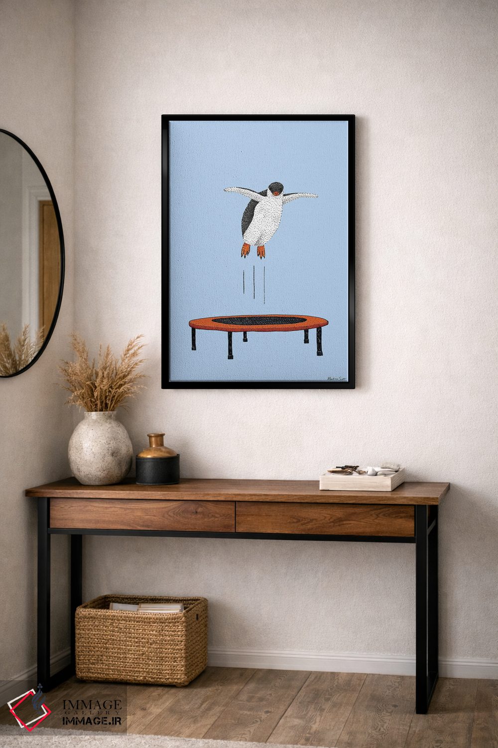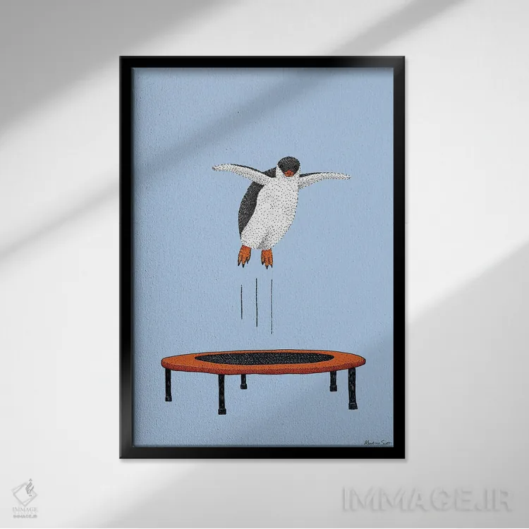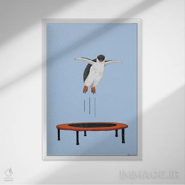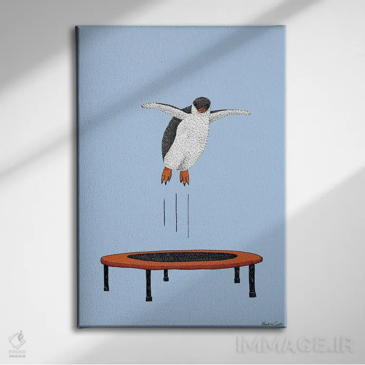 تابلو مدرن پنگوئن روی ترامپولین اثر مارتینا اسکات