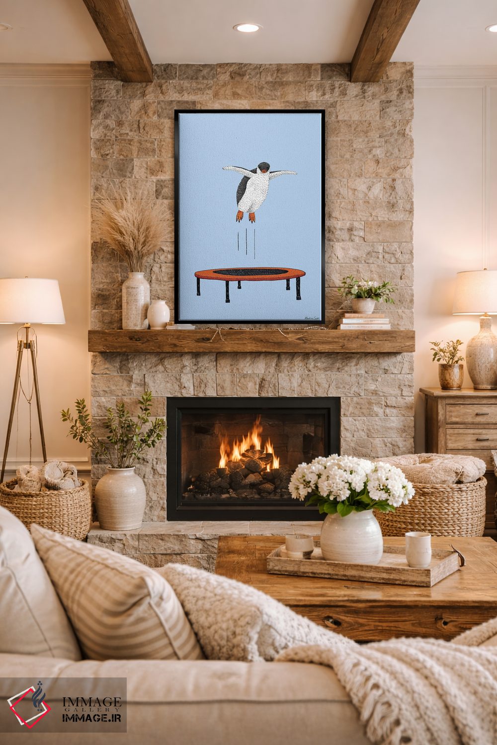 در «پنگوئن روی ترامپولین» اثرِ «مارتینا اسکات»، حضور حیوانات به فضا، گرمیِ ملایم اضافه میکند؛ برای نشیمنهای خانوادگی انتخابی خوشسلیقه است. هم فضا را گرم میکند، هم شلوغش نمیکند.