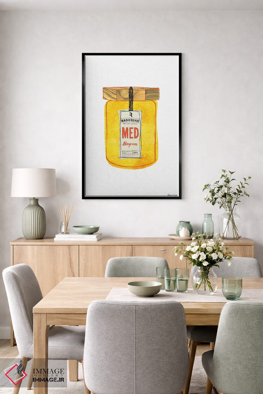 تابلو دکوراتیوِ این دسته با حسی هماهنگ؛ مناسب برای کافهاستایل خانگی و دیوار کنار میز ناهارخوری اثرِ «مارتینا اسکات».