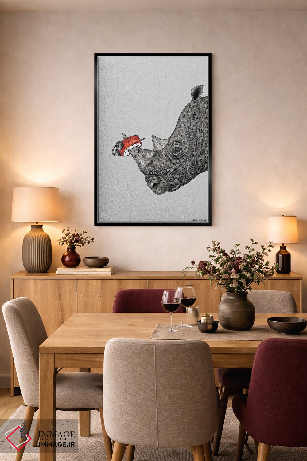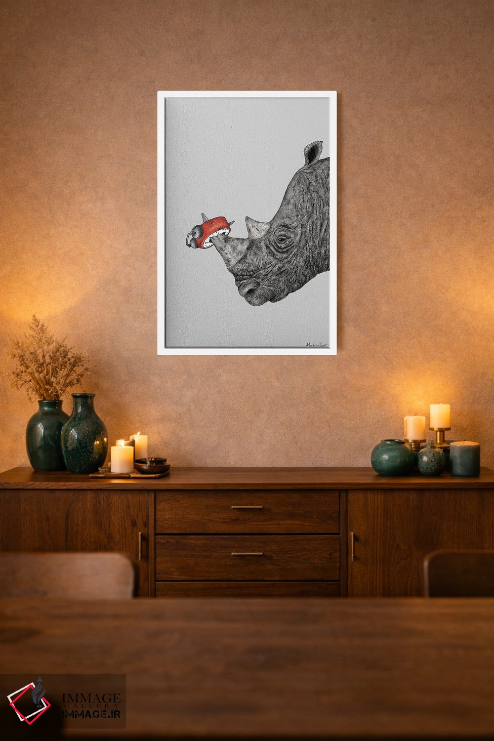 براساس پالت گرم اثر، قاب تیک گرم (چوبی) پیشنهاد اول است و مشکی مات (فریم متوسط) مکمل. برای سفارشهای پروژهای با ابعاد و قابهای اختصاصی با ایماژ در تماس باشید.