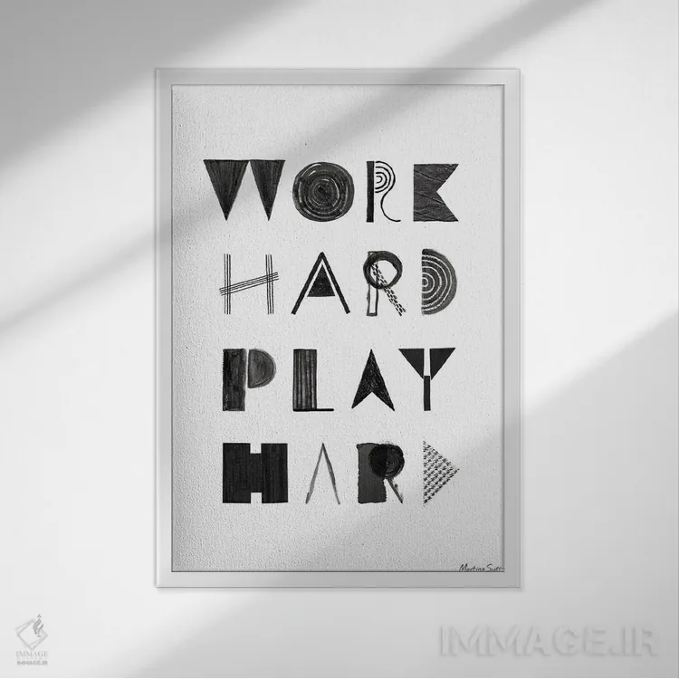 در «سخت کار کن، حسابی خوش بگذرون» اثرِ «مارتینا اسکات»، موضوعِ این اثر با زبان تایپوگرافی روایت میشود؛ تمیز، شفاف و قابلخواندن.
