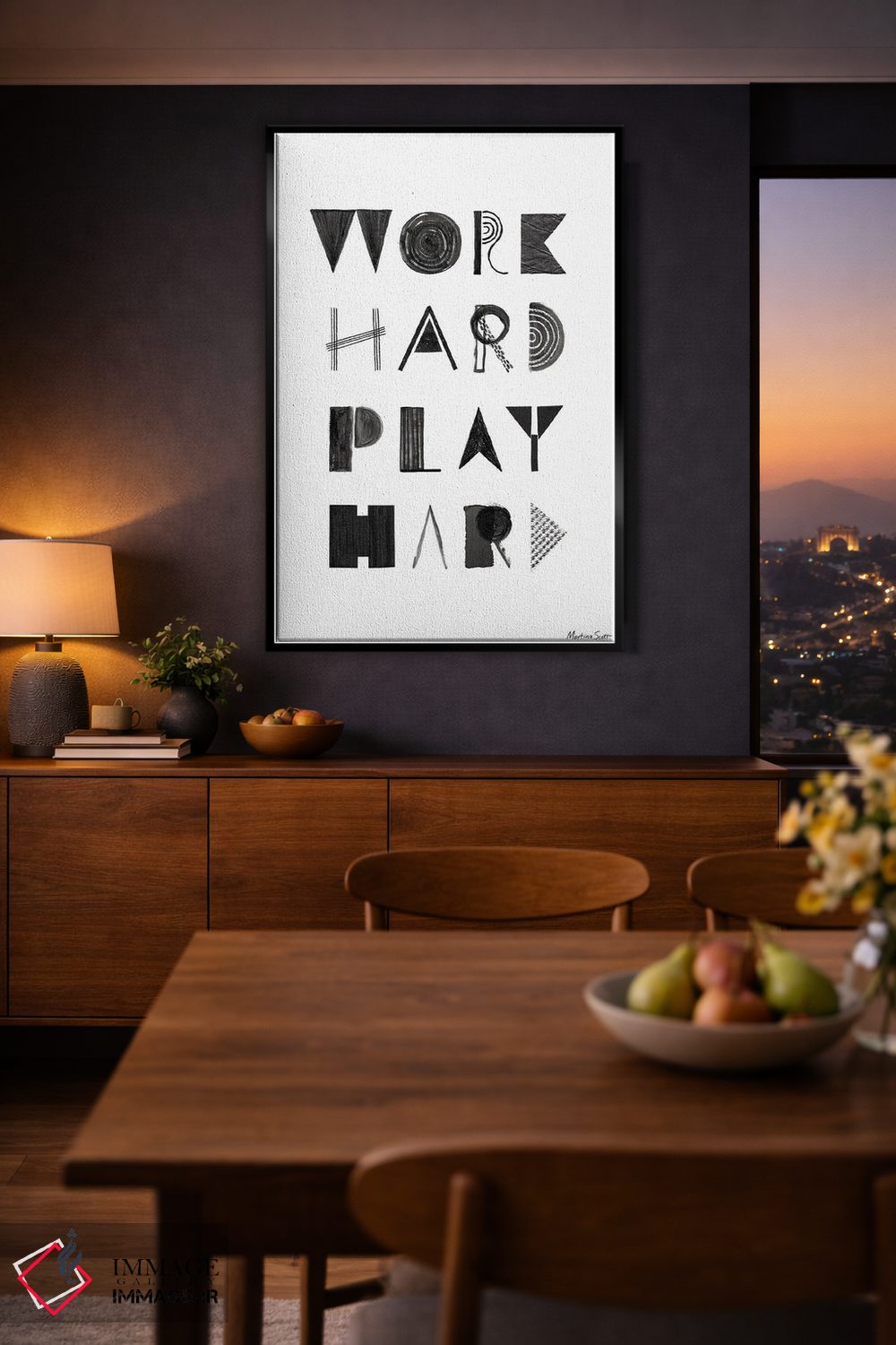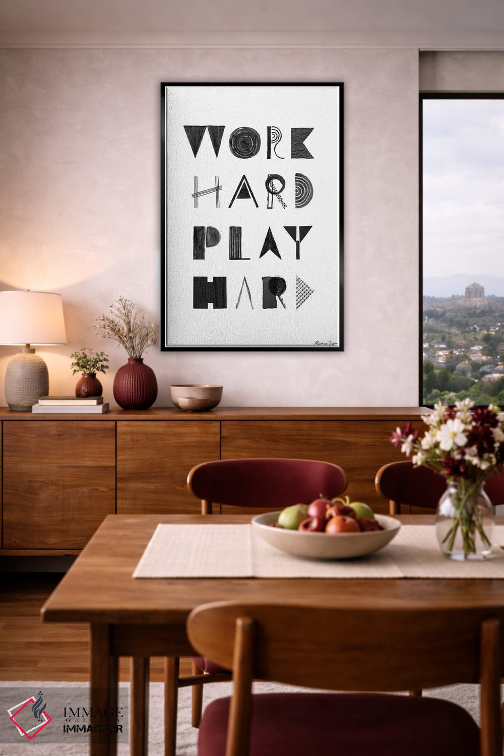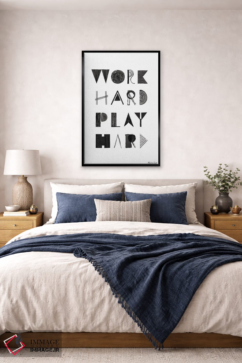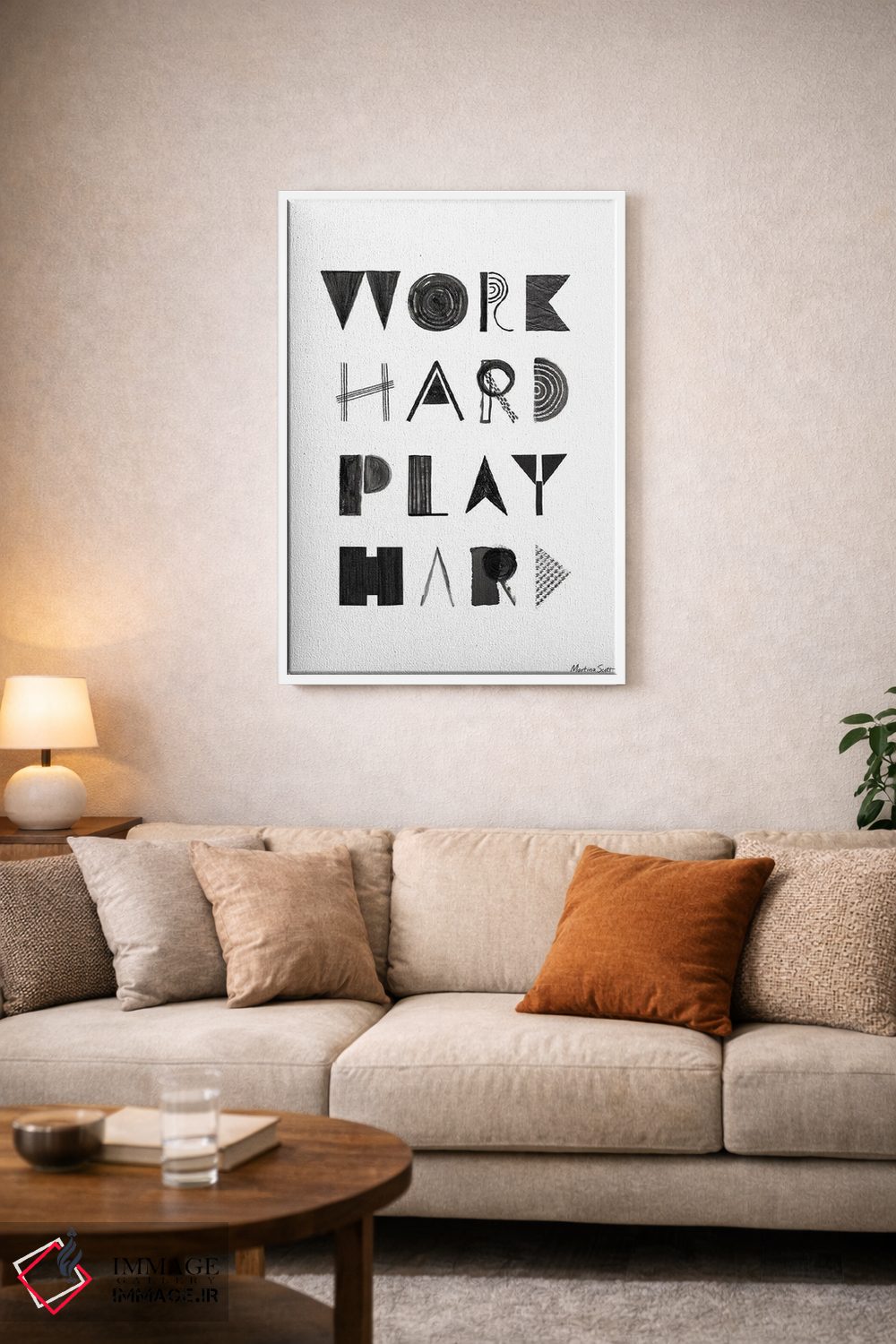 براساس پالت خنثی اثر، قاب مشکی مات (فریم باریک) پیشنهاد اول است و سفید مات (فریم باریک) مکمل. برای سفارشهای پروژهای با ابعاد و قابهای اختصاصی با ایماژ در تماس باشید.