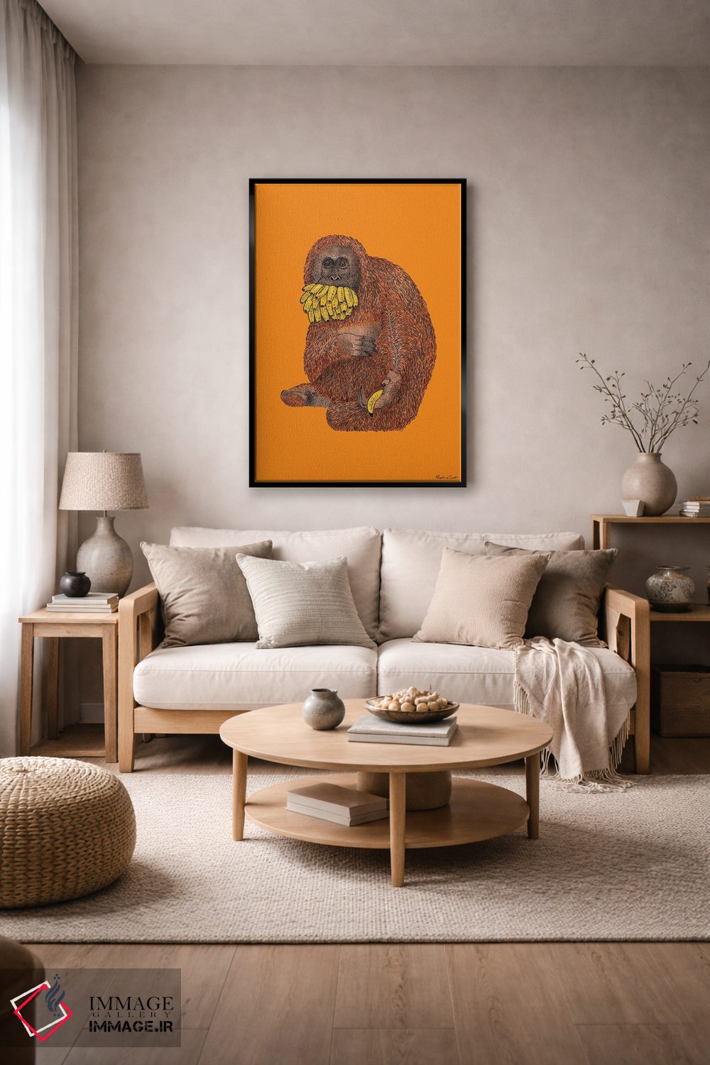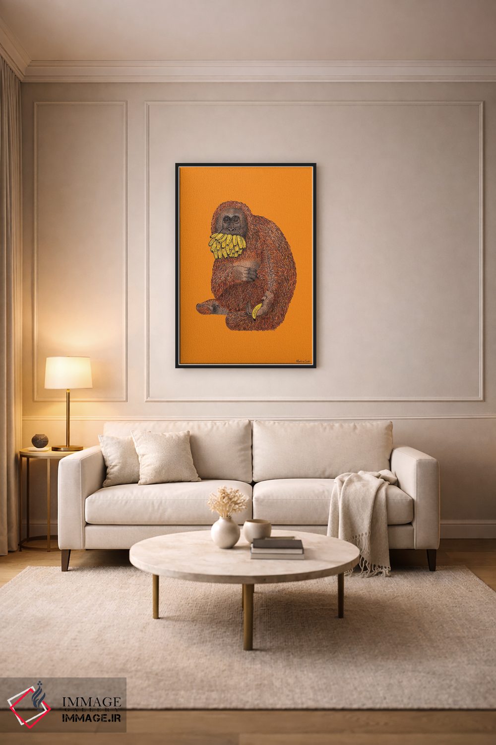براساس پالت گرم اثر، قاب تیک گرم (چوبی) پیشنهاد اول است و مشکی مات (فریم متوسط) مکمل. برای سفارشهای پروژهای با ابعاد و قابهای اختصاصی با ایماژ در تماس باشید.