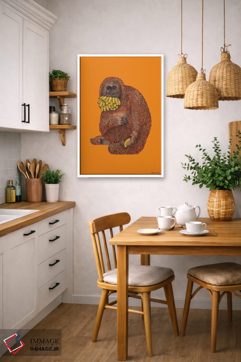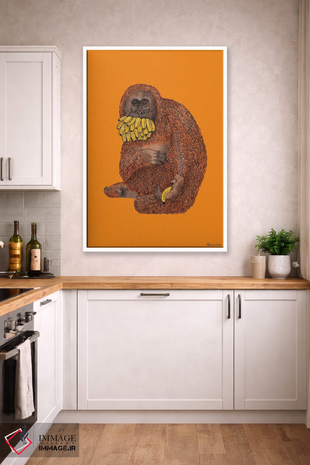 اگر میخواهید دیوار کمی سرزندگیِ محترمانه داشته باشد، «خوشحال از تقسیم کردن... یکی» اثرِ «مارتینا اسکات» فضا را صمیمیتر و دعوتکنندهتر نشان میدهد، برای هدیهدادن به دوستداران حیوانات گزینهٔ مناسبیست. هر بار نگاهش میکنید، یک جزئیات تازه به چشم میآید.
