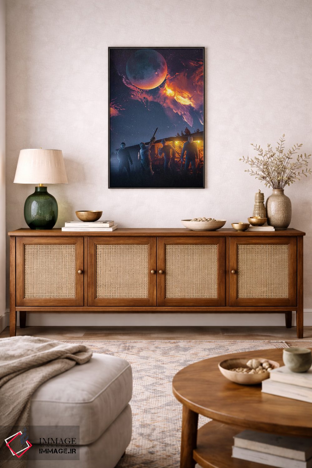 بوم گالری ایماژ نسخهی چیدماناتیوِ باکیفیت از یک اثر هنری است؛ روی کنواس بدون اسید با بافت ظریف و یکنواخت با فرآیند چاپ حرفهای جیکلی (Giclée) و کنترل دقیق تونها و جوهرهای آرشیوی Epson UltraChrome HDR برای بازنمایی بهتر تونهای حساس، روی دیوار، کار یکدستتر و خوشکیفیتتر دیده میشود. اسمبل تمیز و آمادهی نصب؛ کشیدگی استاندارد روی کلاف و یراق مناسب.