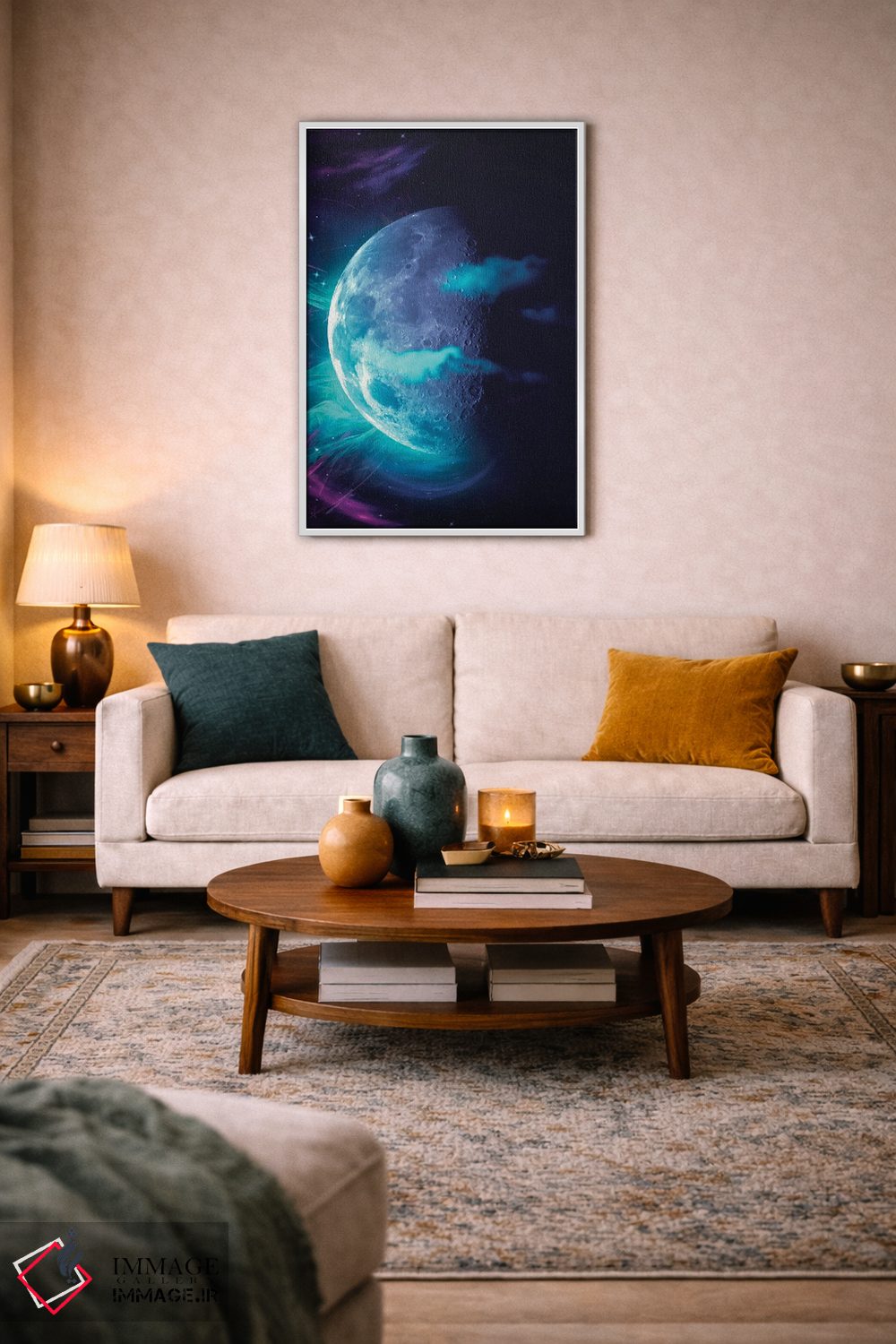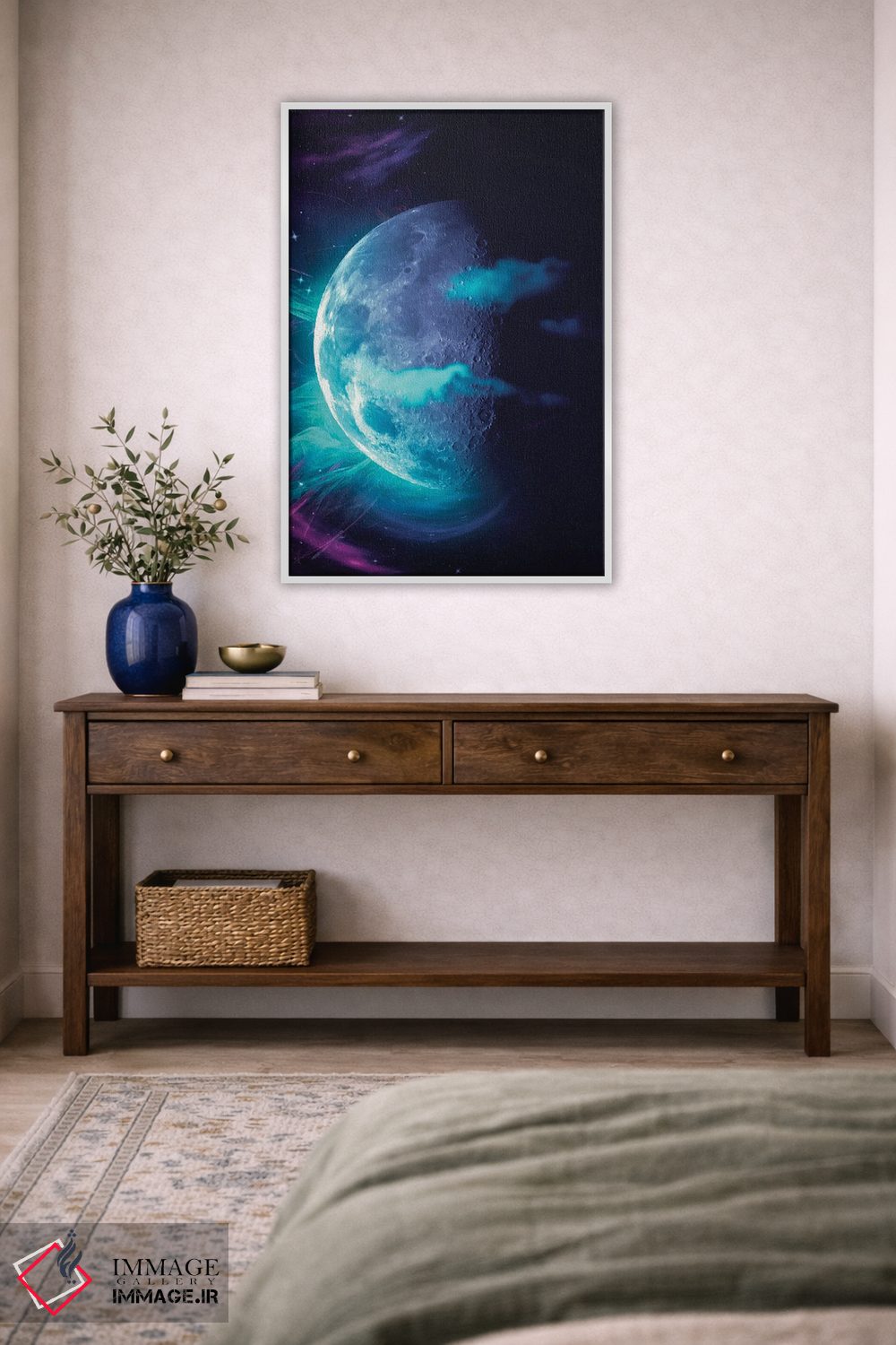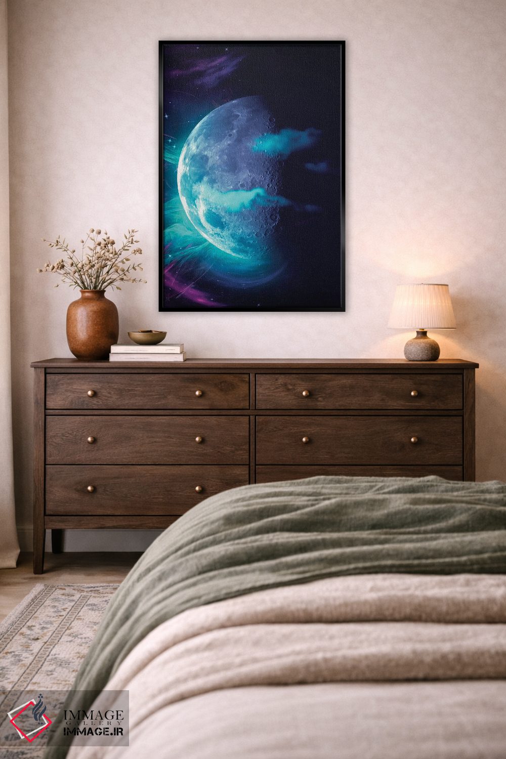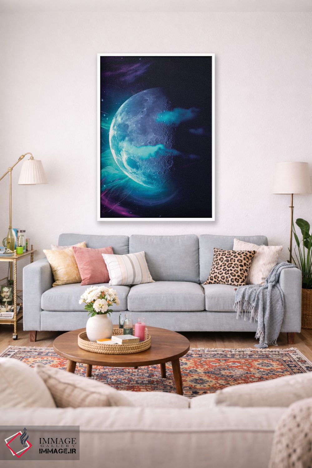 «ماه» اثرِ «ماریشا بکر» با حس هنری، این اثر را به دیوار میآورد؛ برای فضاهای کمجزئیات و رنگهای خنثی، عالی است.