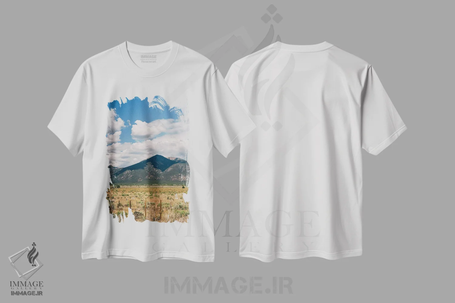تیشرت سفید طرح دار کوه های تائوس ۲، مدیوم اثر بثانی یانگ | فروشگاه ایماژ