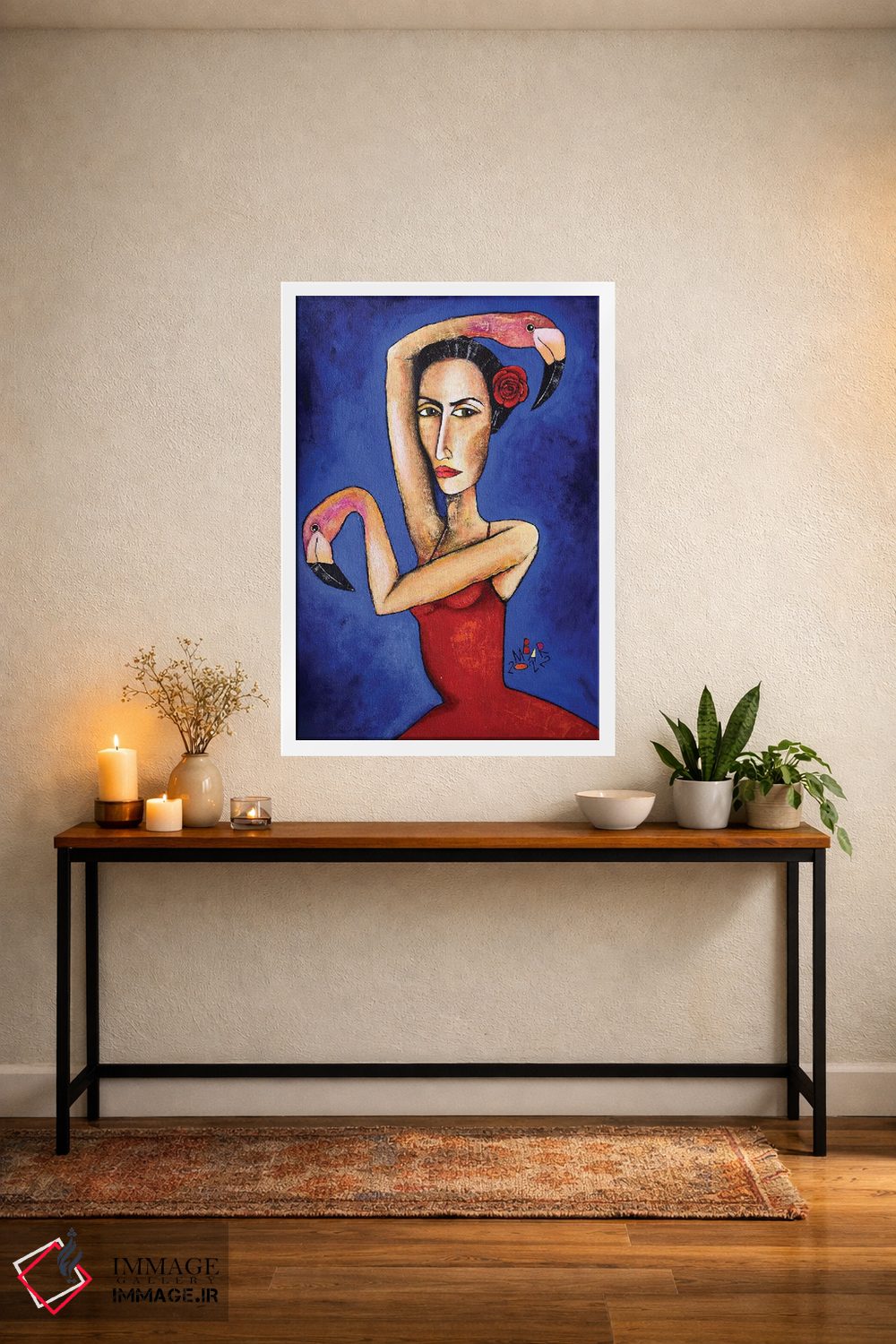 این اثر با عنوان «فلامنکو—فلامینگو (بازی زبانی)» اثرِ «میخائیل بارانوفسکی» در کنار رنگهای خنثی، تضاد دلچسبی میسازد؛ برای دکورهایی با رنگهای خنثی انتخابی خوشسلیقه است. حسش صمیمی است، اما کیفیتش جدی و خوشپرداخت.