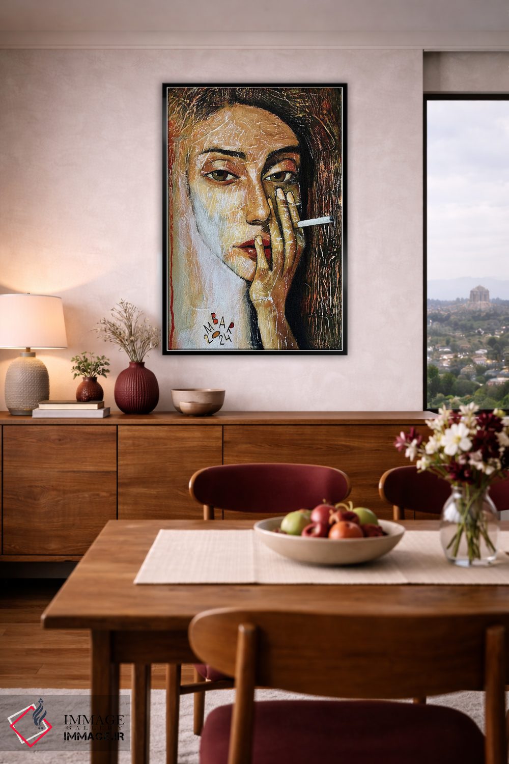 ساختار بوم گالری ایماژ طوری است که اثر روی دیوار «پرداختشده» و حرفهای دیده شود—نه پرزرقوبرقِ بیپایه؛ بلکه دقیق و خوشپرداخت. با بافت ظریف کنواس، حس اثر هنری را در نگاه نزدیک نگه میدارد و نتیجه را یکدستتر میکند. با کنترل تونها، از تند شدن ناخواستهی رنگها جلوگیری میکند و در چیدمانهای مدرن و کمینهگرا خیلی خوب مینشیند. در نهایت، نتیجه چیزی شبیه تفاوت نسخهی معمولی با نسخهی باکیفیتتر است: نه رنگِ بیشتر، بلکه پرداخت بهتر؛ و اگر بخواهید، میتوان چیدمان را برای گالریوال هم پیشنهاد داد.