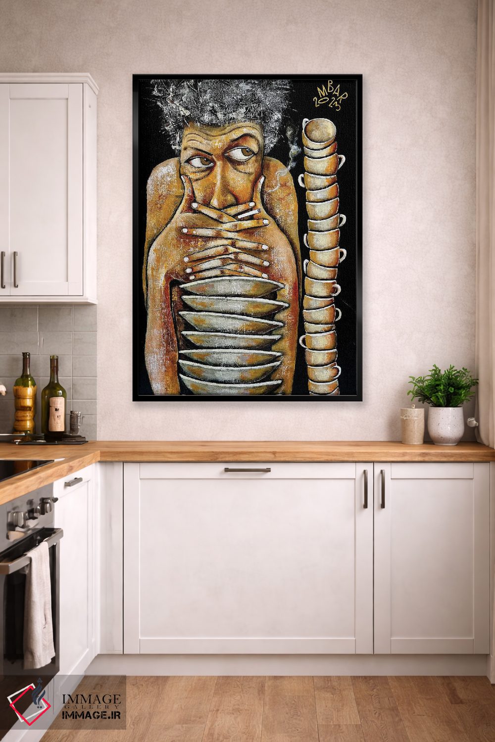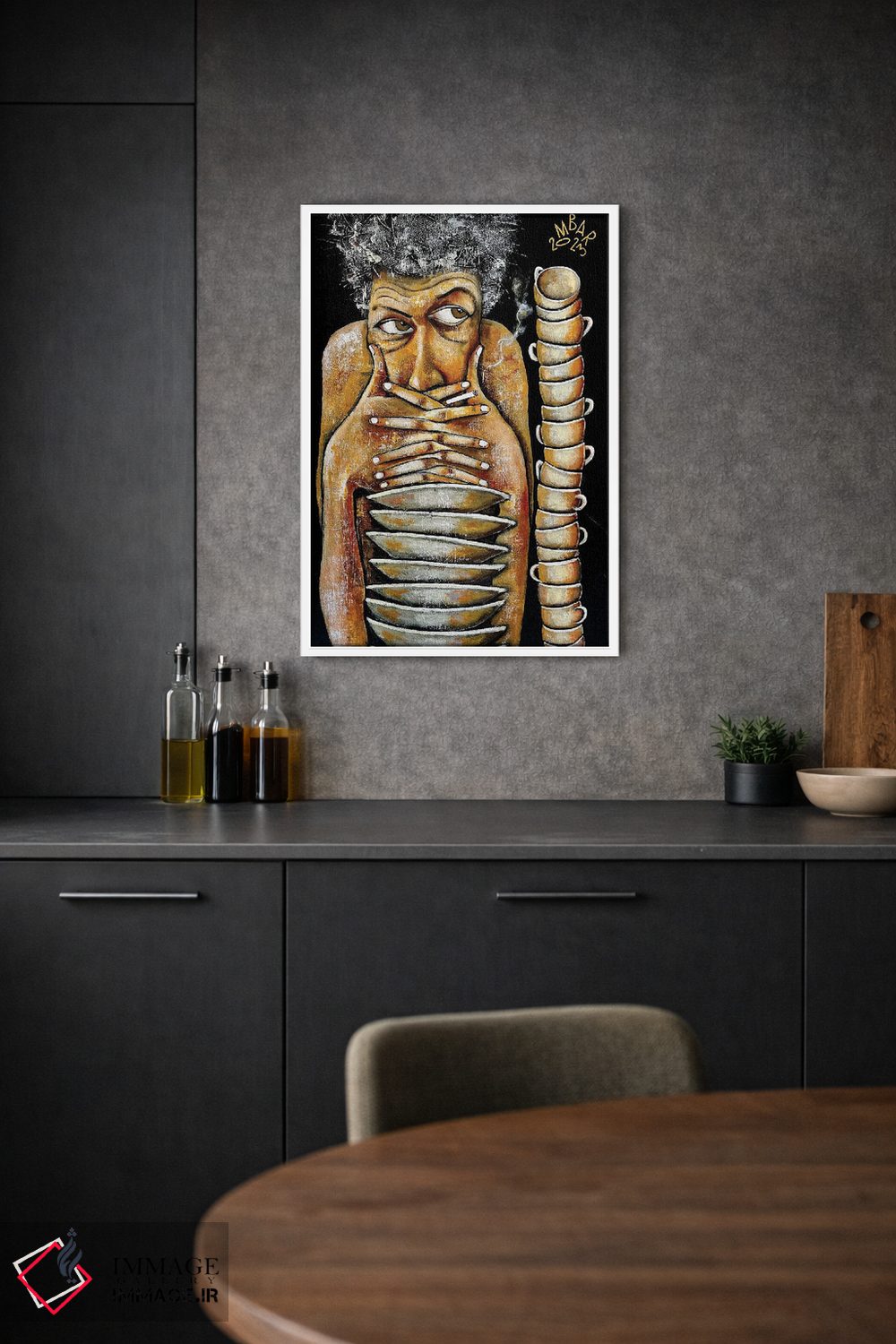 براساس پالت گرم اثر، قاب تیک گرم (چوبی) پیشنهاد اول است و مشکی مات (فریم متوسط) مکمل. برای سفارشهای پروژهای با ابعاد و قابهای اختصاصی با ایماژ در تماس باشید.