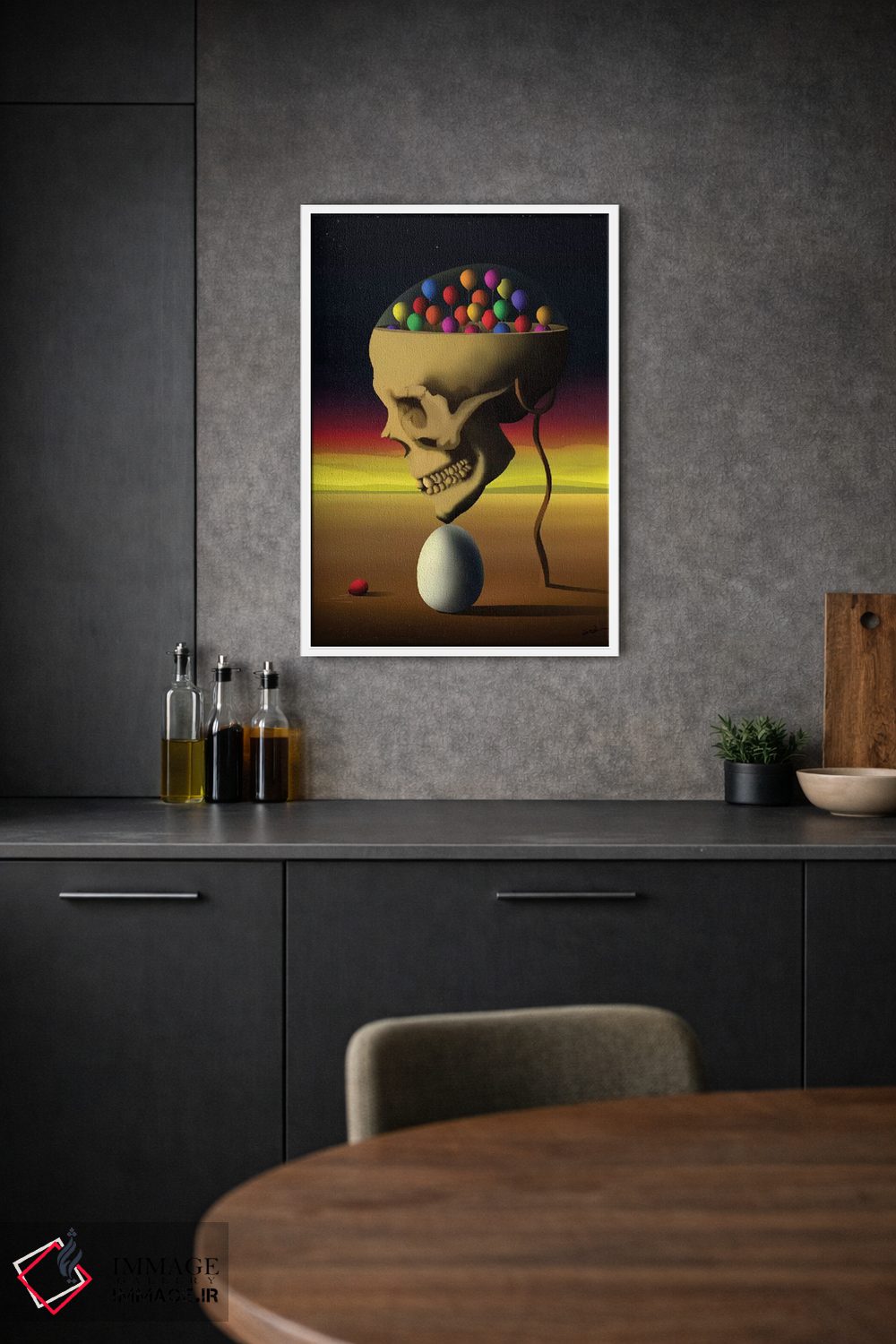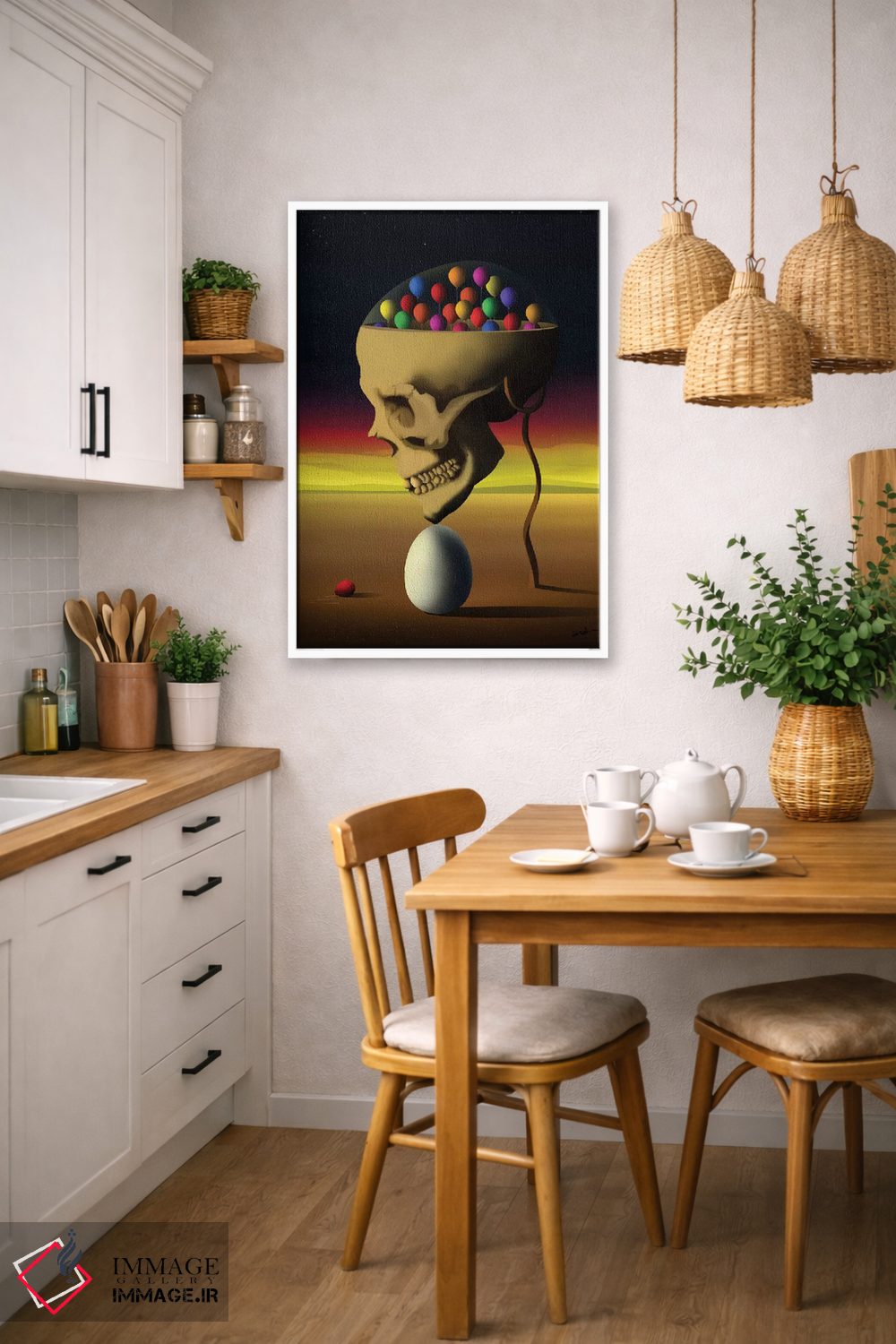 این تابلو با موضوعِ این دسته و اجرای هنری، یک انتخاب جذاب برای آشپزخانه یا فضای غذاخوری است اثرِ «مارسل کارام».