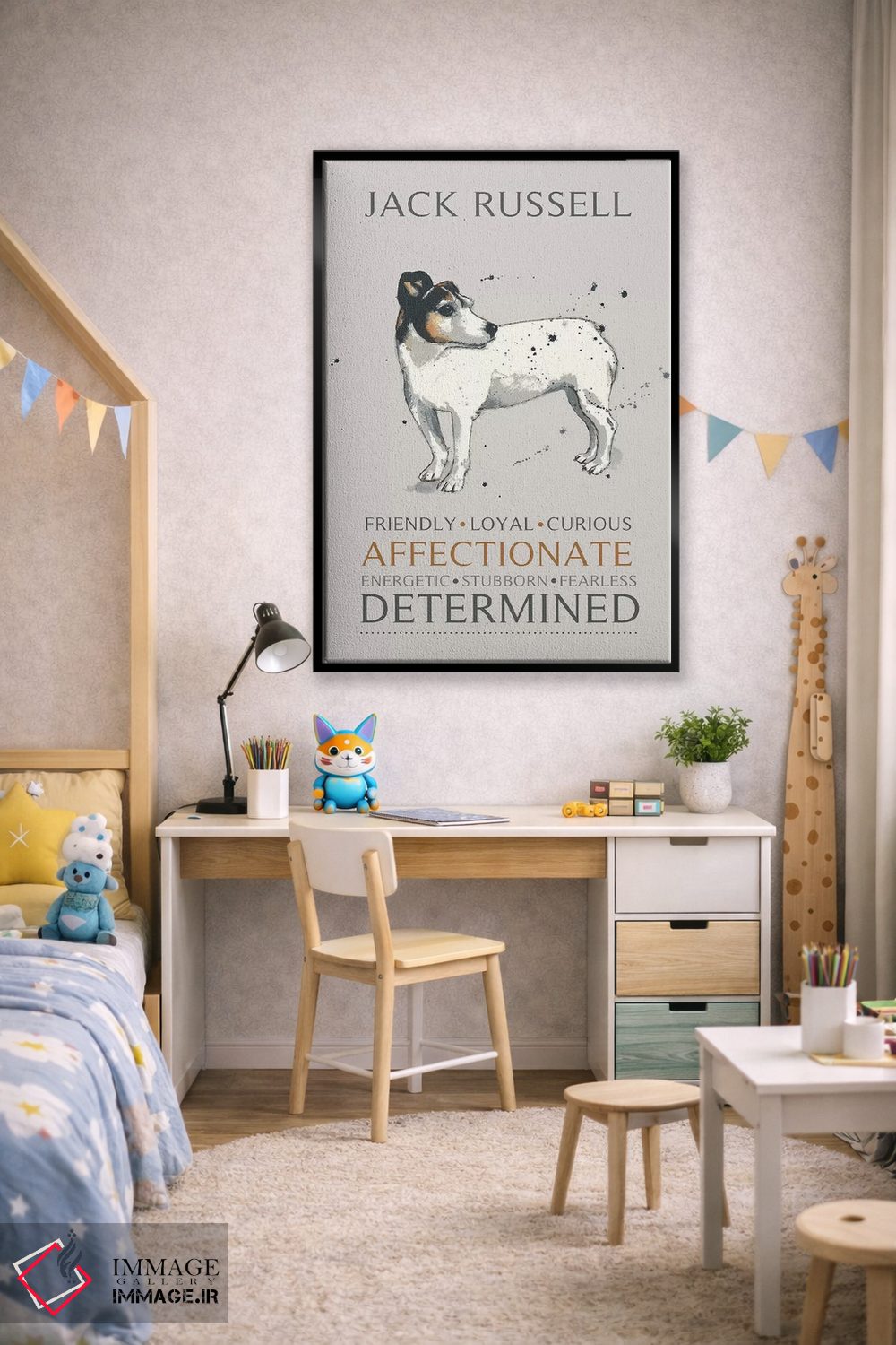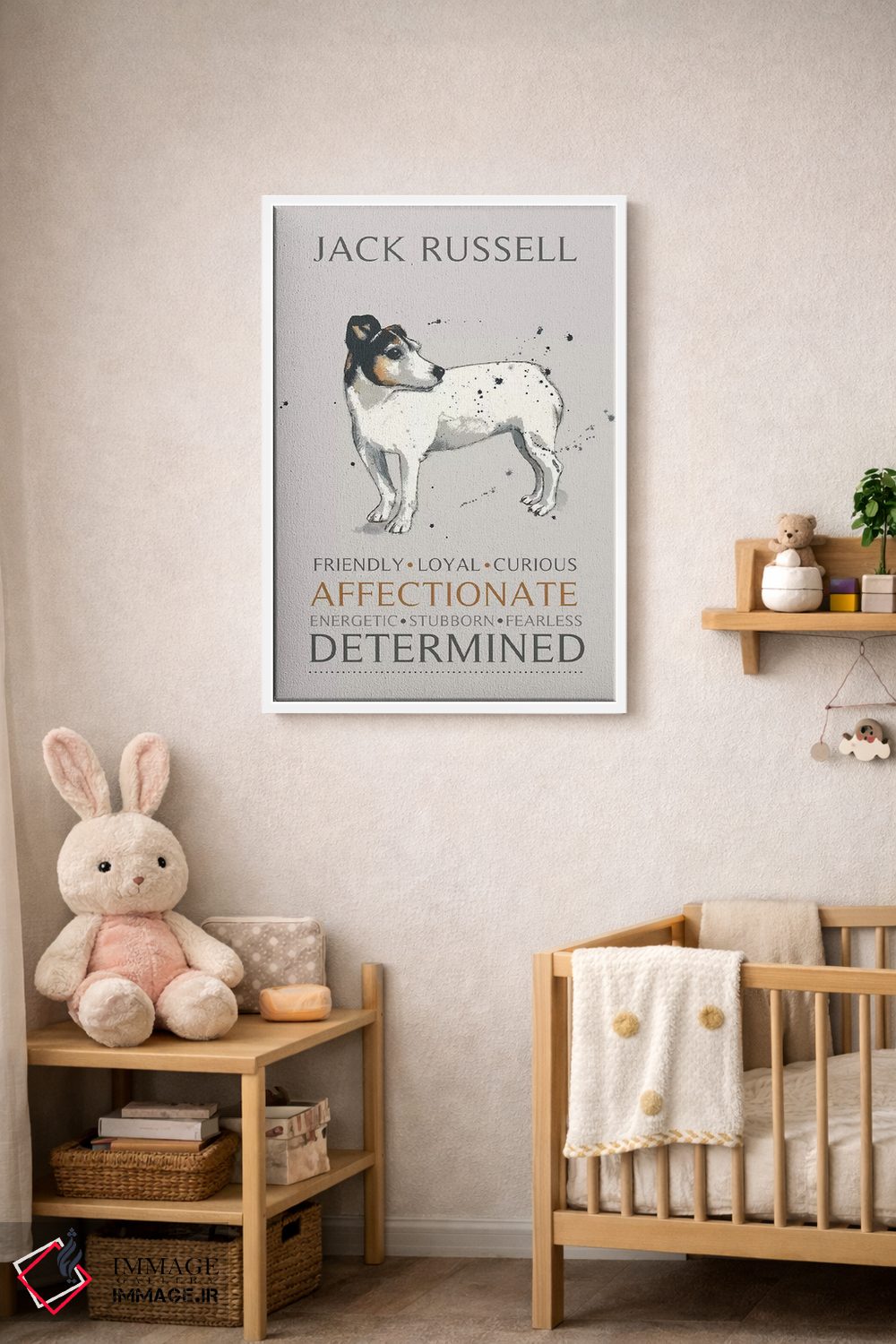 اگر به آثار حیوانات علاقه دارید، «جک راسل (نژاد سگ)» اثرِ «میشل کمپل» به فضا، گرمیِ ملایم اضافه میکند، برای فضاهای روستیک یا بوهو گزینهٔ مناسبیست. هر بار نگاهش میکنید، یک جزئیات تازه به چشم میآید.