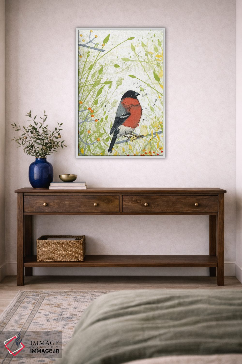 تابلو دکوراتیو فنچ سینه سرخ اثر میشل کمپل
