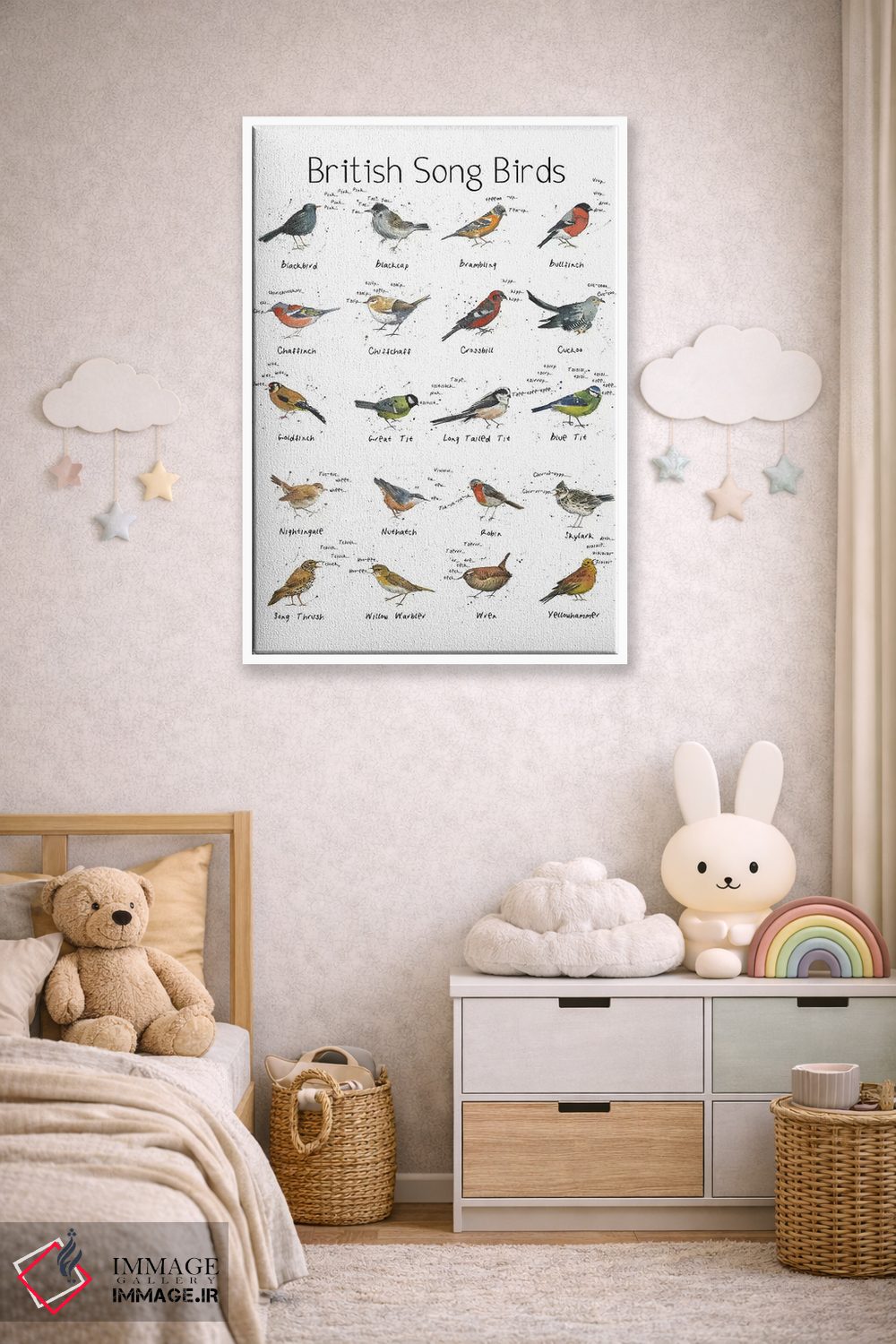 این اثر با عنوان «پرندگان آوازخوان بریتانیا» اثرِ «میشل کمپل» بدون کودکانه شدن، بازیگوش و خوشپرداخت میماند؛ برای دکورهایی با رنگهای خنثی انتخابی خوشسلیقه است. در کنار گیاهان و نور طبیعی، جذابتر هم میشود.