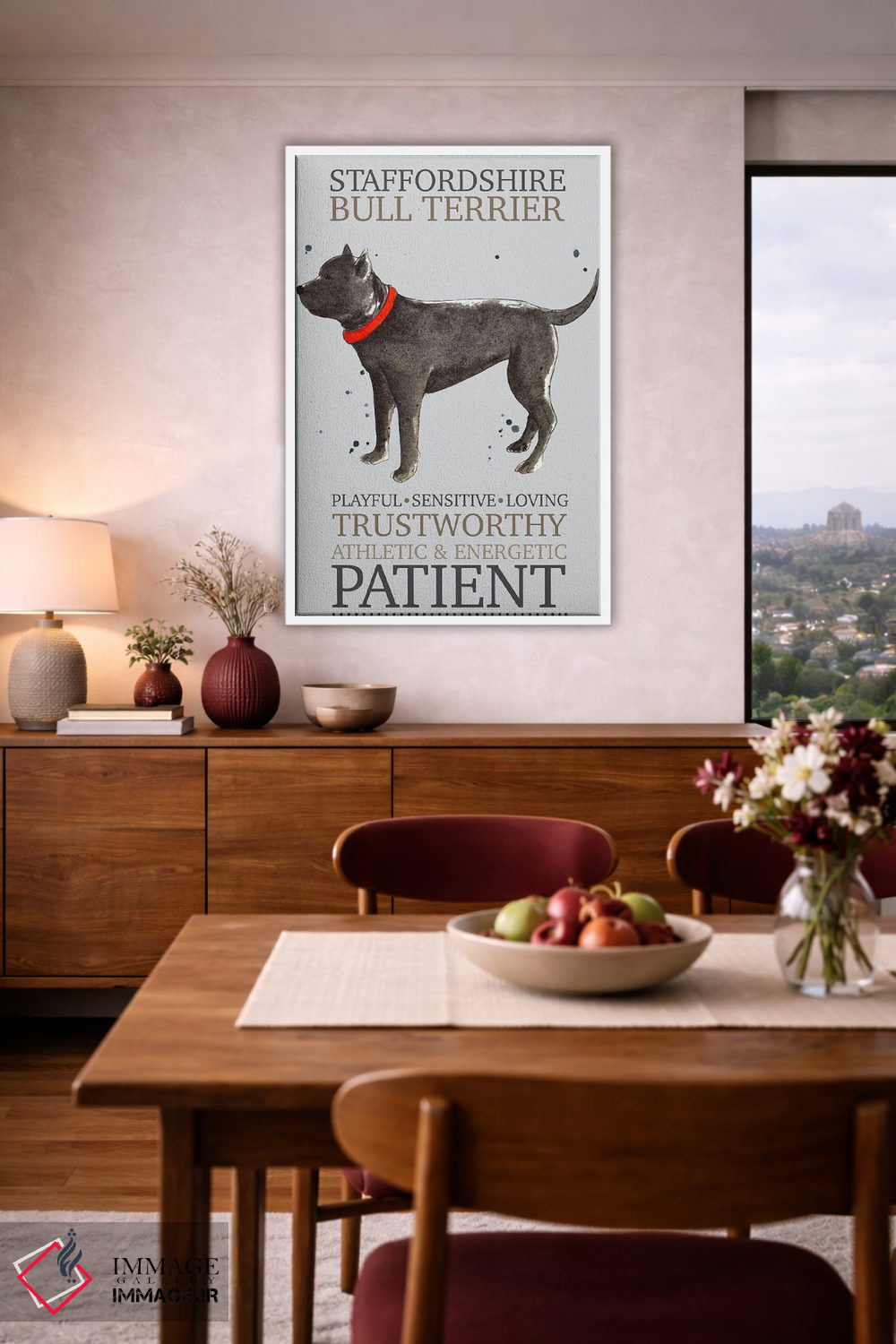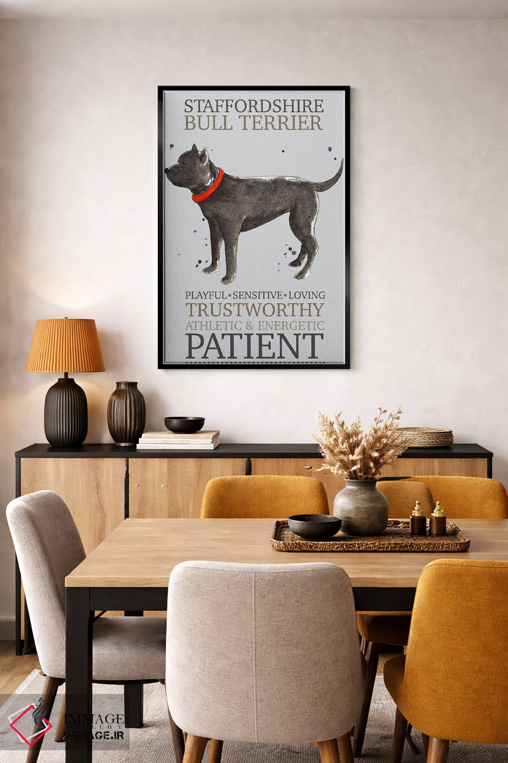 تابلو دکوراتیو ویژگی های سگ تریر بول استفوردشایر اثر میشل کمپل