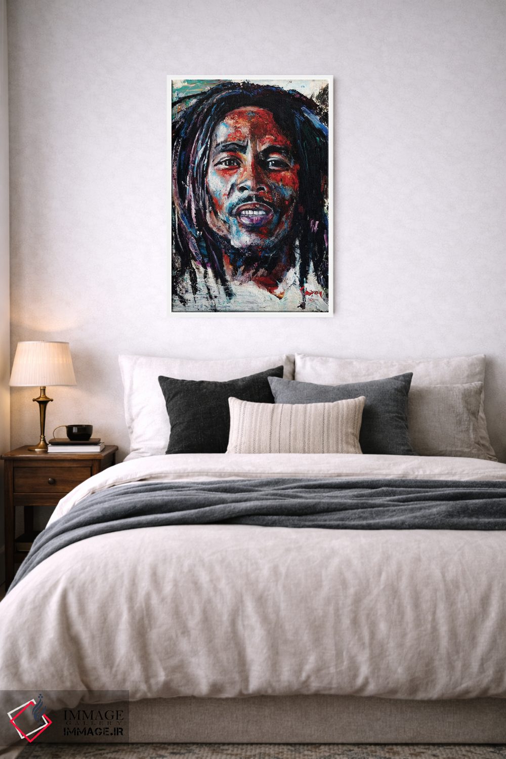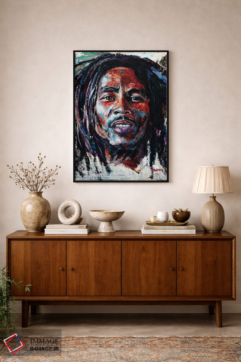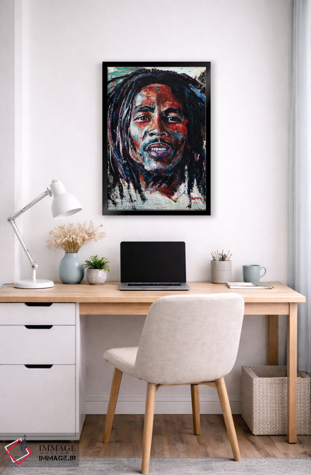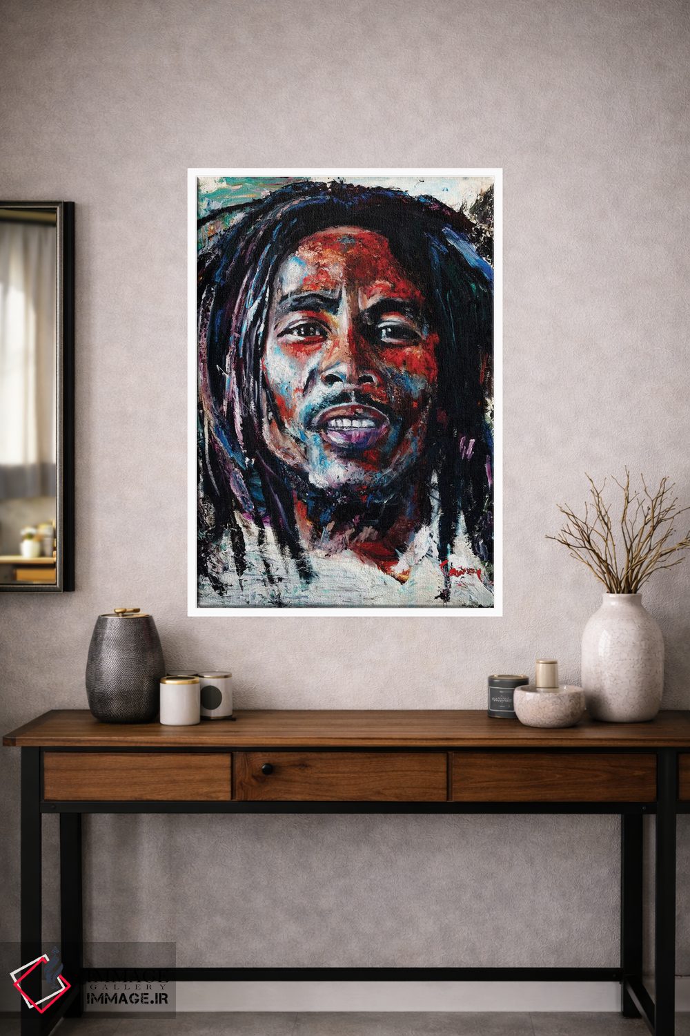 برای سلیقههایی که به جزئیات احترام میگذارند، «باب مارلی» اثرِ «مارک کورِیج» تضادهای رنگی را خوشقوارهتر میکند؛ برای محیطهای کاری و استودیوهای خلاق پیشنهاد میشود. در کنار قاب مناسب، جلوهٔ کار چند برابر میشود.