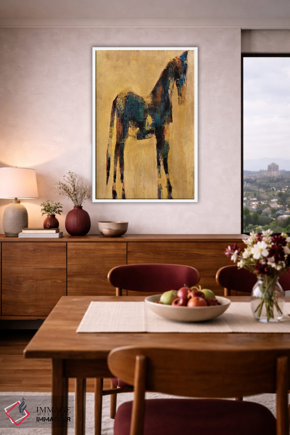 براساس پالت گرم اثر، قاب تیک گرم (چوبی) پیشنهاد اول است و مشکی مات (فریم متوسط) مکمل. برای سفارشهای پروژهای با ابعاد و قابهای اختصاصی با ایماژ در تماس باشید.