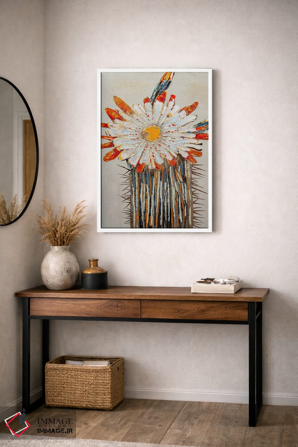 در بوم گالری ایماژ، همهچیز طوری طراحی شده که اثر روی دیوار «پرداختشده» و حرفهای دیده شود—نه پرزرقوبرقِ بیپایه؛ بلکه دقیق و خوشپرداخت. با بافت ظریف کنواس، حس اثر هنری را در نگاه نزدیک نگه میدارد و همین «پرداخت» تفاوت را میسازد. ارائهی آماده نصب کمک میکند تجربهی نصب را ساده و بیدردسر میکند و نتیجه را یکدستتر میکند. حاصل کار، یک تابلو خوشنشین است که هم از دور اثرگذار است و هم از نزدیک خوشخوان؛ در محیطهای کاری، این نظم بصری خیلی به چشم میآید.