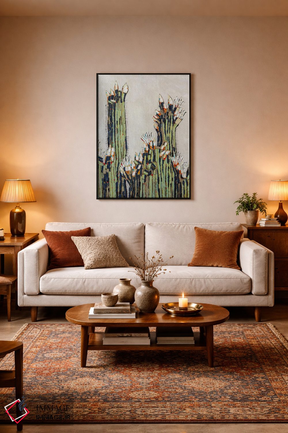ساختار بوم گالری ایماژ طوری است که اثر روی دیوار «پرداختشده» و حرفهای دیده شود—نه پرزرقوبرقِ بیپایه؛ بلکه دقیق و خوشپرداخت. با بافت ظریف کنواس، حس اثر هنری را در نگاه نزدیک نگه میدارد بدون اغراق؛ فقط دقیقتر. در قابپذیری، هماهنگی قاب با پالت رنگ جلوه را تقویت میکند و برای محیطهای رسمیتر هم انتخاب مطمئنی است. برای سفارش اندازه یا قاب متفاوت، تیم ایماژ راهنمایی میکند تا انتخاب نهایی هماهنگتر باشد؛ برای هدیهی هنری هم انتخاب محترمانهای است. برای پروژههای معماری داخلی، انتخاب اندازه و قاب را میتوان دقیقتر هماهنگ کرد.