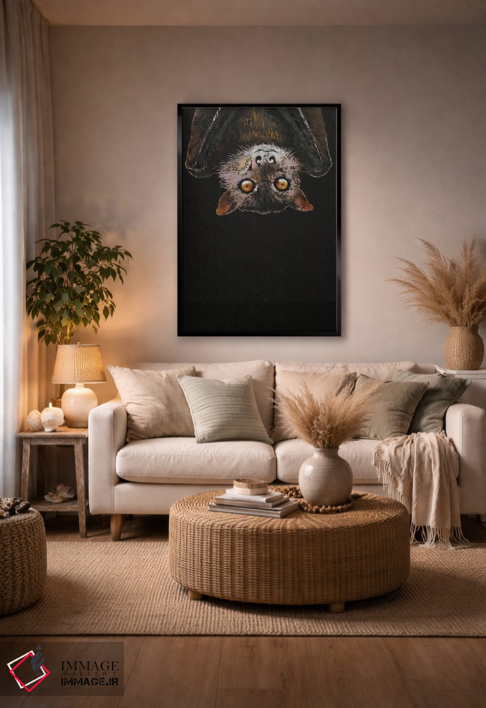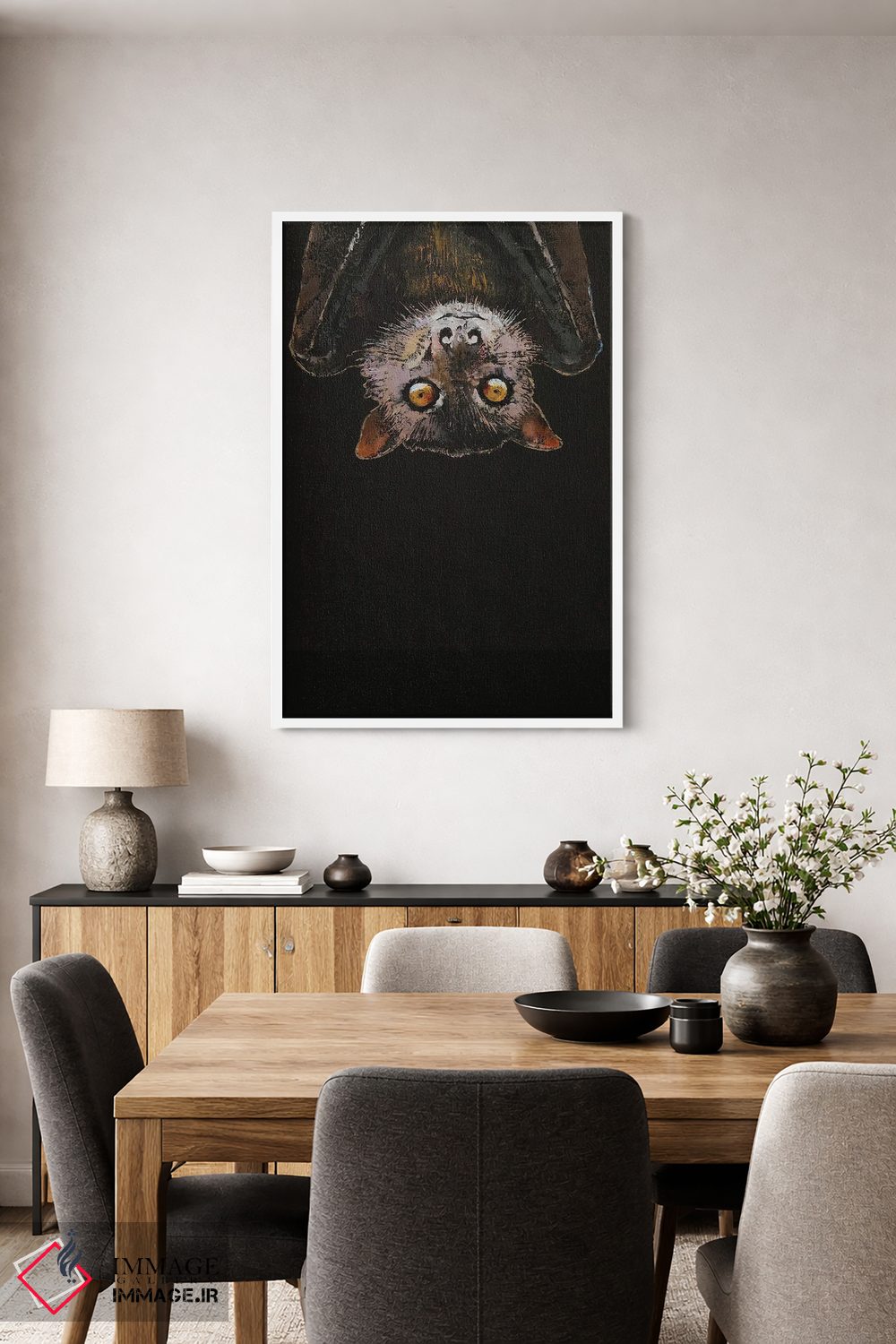اگر به آثار حیوانات علاقه دارید، «خفاش» اثرِ «مایکل کریس» یک لبخند ریز به چیدمان میدهد، برای خانههایی با چوب و پارچههای گرم گزینهٔ مناسبیست. اگر دنبال اثر دوستداشتنیِ «بیغلو» هستید، این یکی دقیق مینشیند.