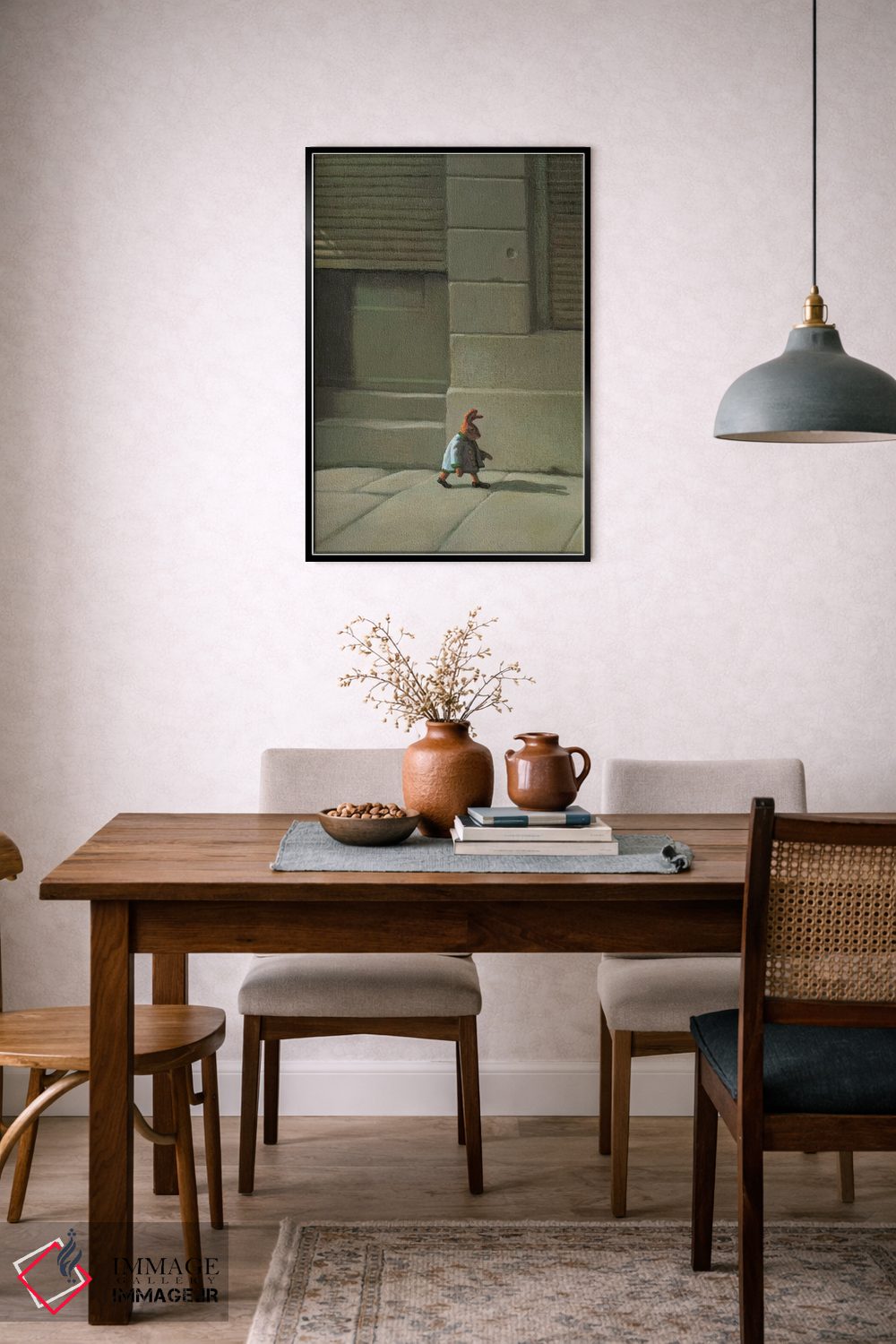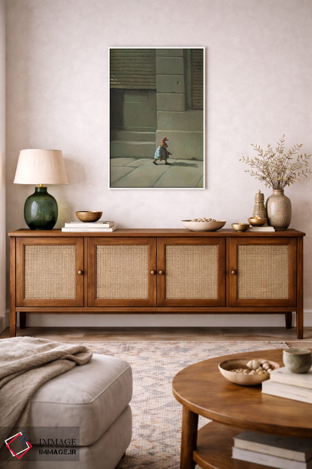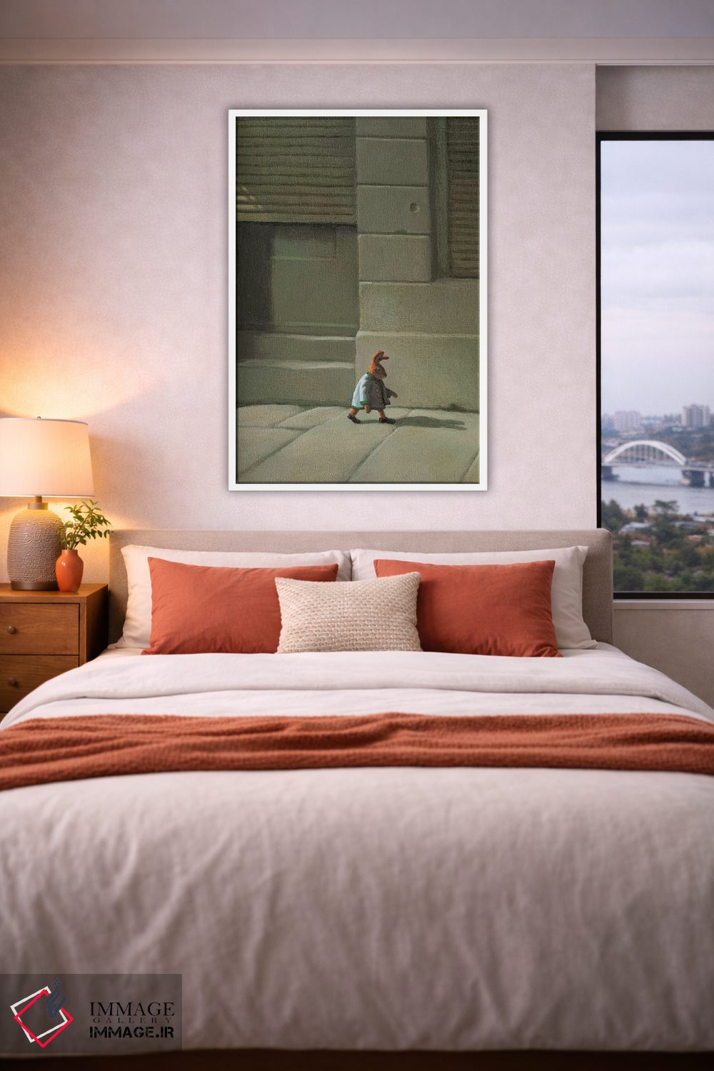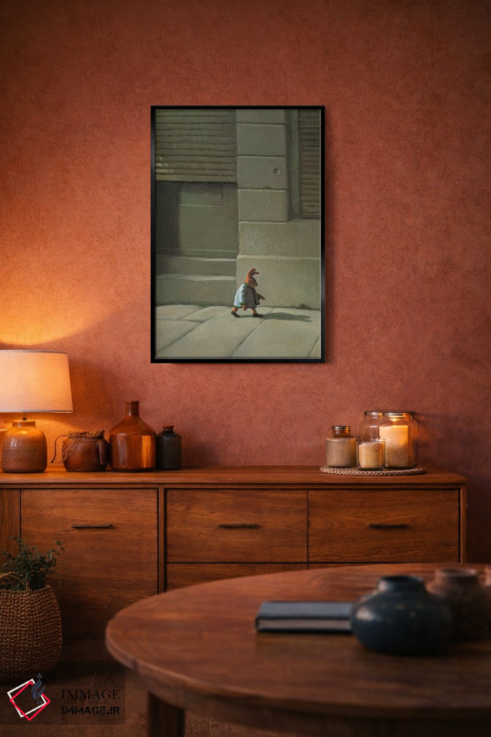 اگر میخواهید دیوار کمی سرزندگیِ محترمانه داشته باشد، «خرگوش خیابانی» اثرِ «مایکل سووا» به دیوار، انرژیِ نرم و زنده میدهد، برای دکورهای مدرن و مینیمال گزینهٔ مناسبیست. با نورپردازی نقطهای، جذابتر هم میشود.
