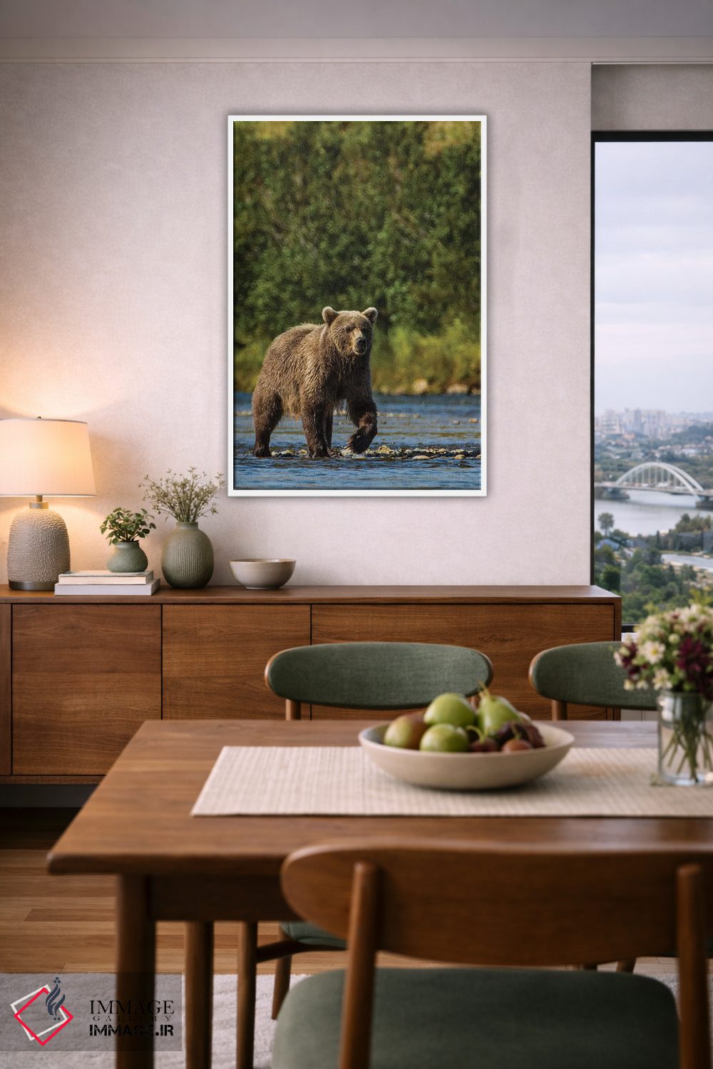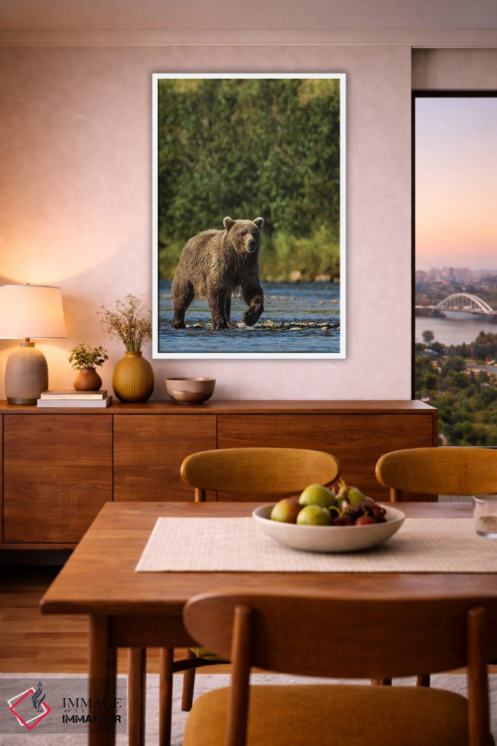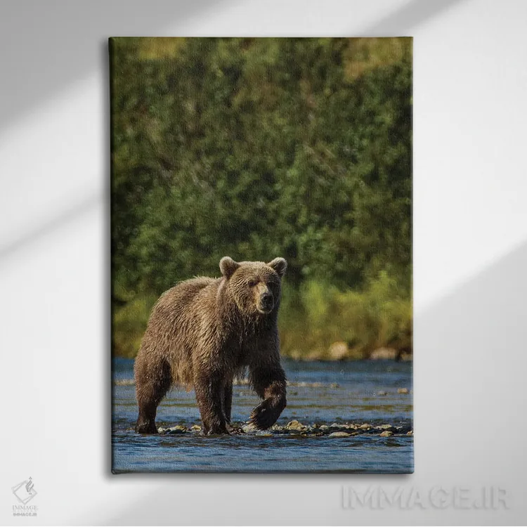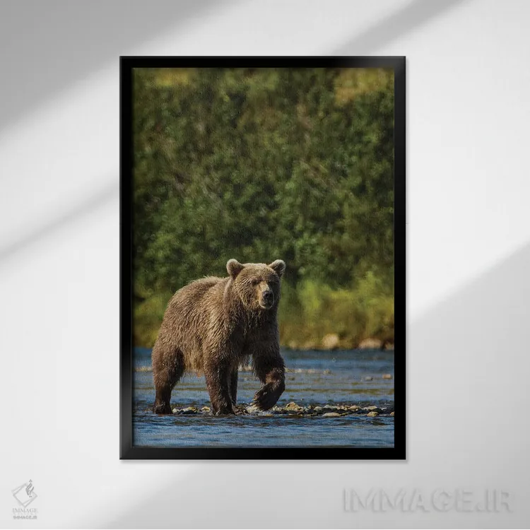 برای دیوارهای ساده، «خرس گریزلی یا قهوهای (Ursus arctos)، رودخانه مورین، پارک و منطقه حفاظتشده کتمای، آلاسکا» اثرِ «مایکل دفریتاس» فضا را صمیمیتر و دعوتکنندهتر نشان میدهد؛ برای هدیهدادن به دوستداران حیوانات انتخابی خوشسلیقه است. حسش صمیمی است، اما کیفیتش جدی و خوشپرداخت.