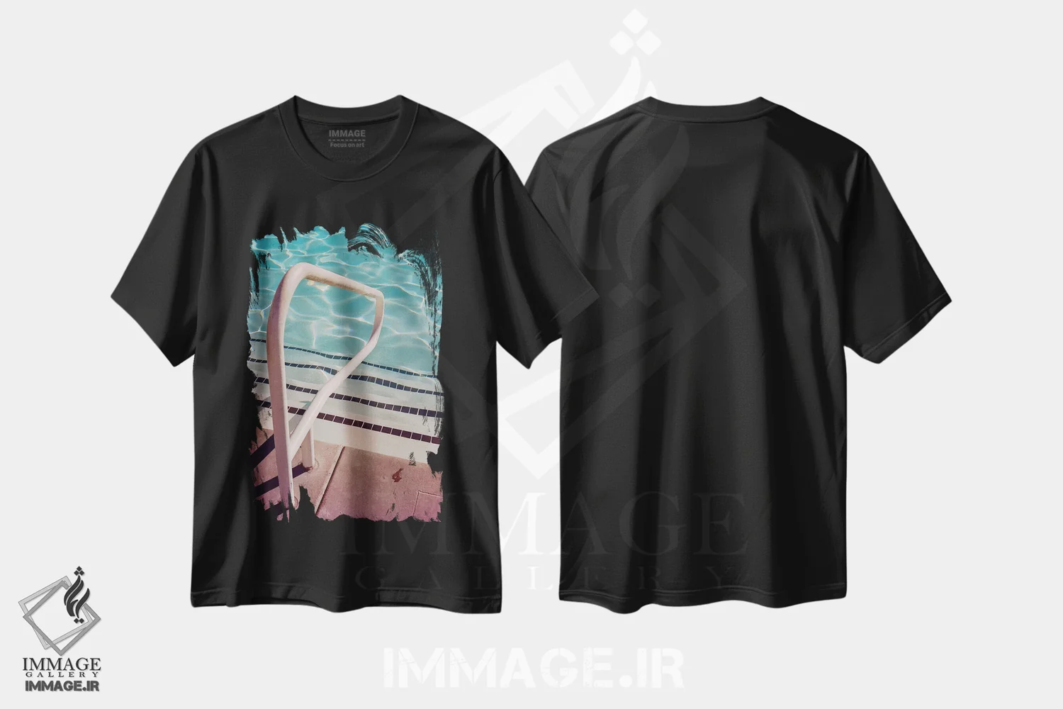 تیشرت مشکی طرح دار روز استخر پالم اسپرینگز، مدیوم اثر بثانی یانگ | فروشگاه ایماژ