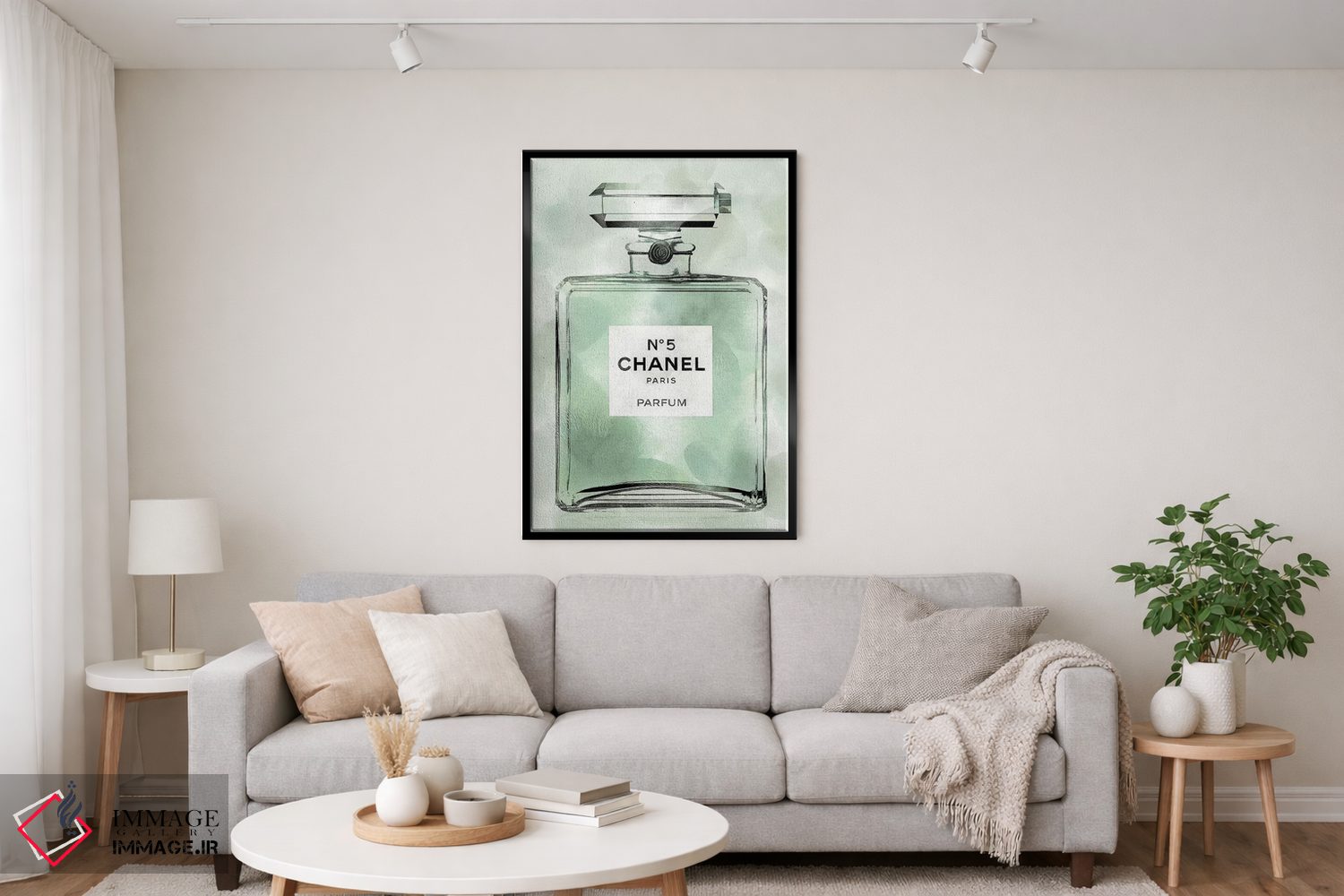 تابلو دکوراتیو بطری عطر سبز اثر مدلین بلیک - نمای پرسپکتیو محصول