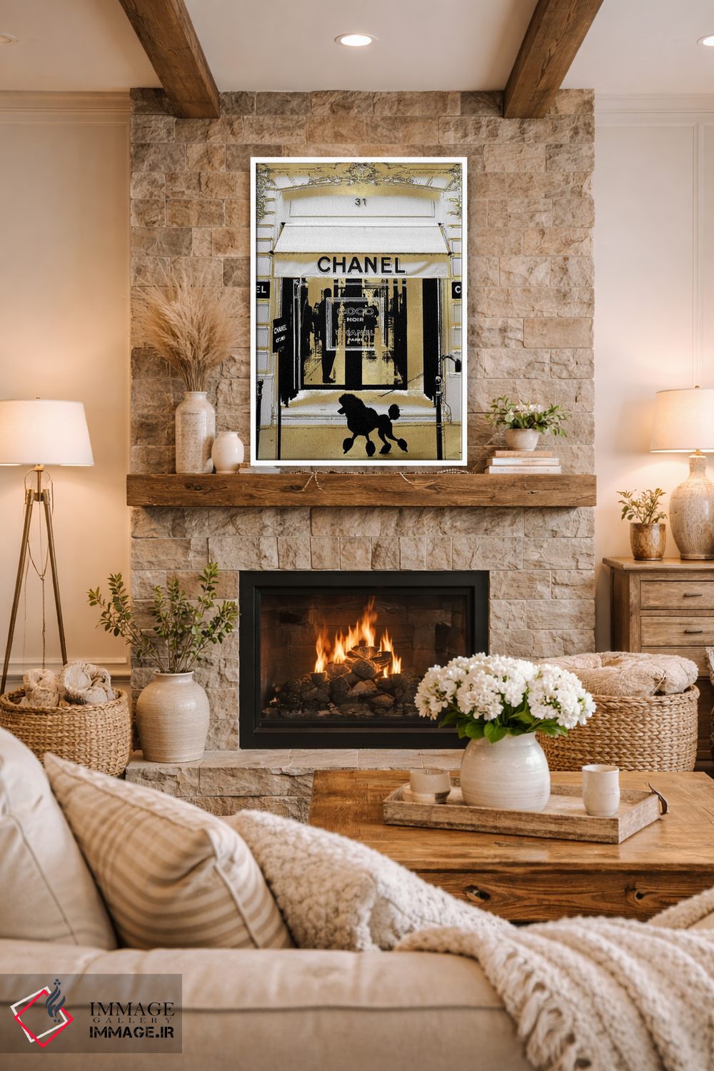 براساس پالت گرم اثر، قاب بلوط روشن (چوبی) پیشنهاد اول است و استخوانی ملایم مکمل. برای سفارشهای پروژهای با ابعاد و قابهای اختصاصی با ایماژ در تماس باشید.