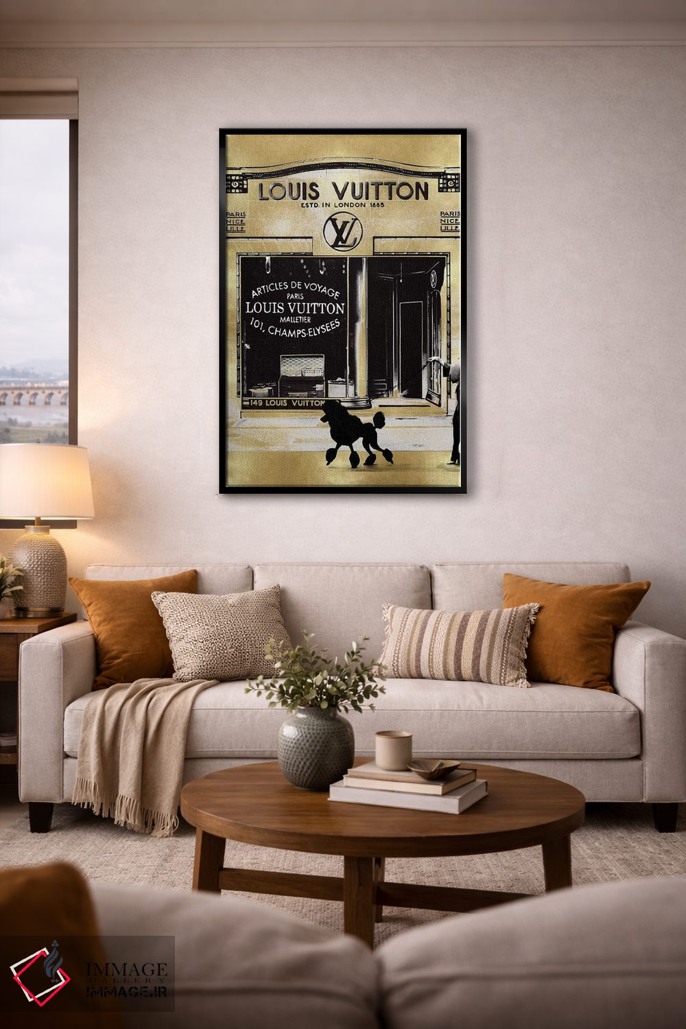 براساس پالت گرم اثر، قاب بلوط روشن (چوبی) پیشنهاد اول است و استخوانی ملایم مکمل. برای سفارشهای پروژهای با ابعاد و قابهای اختصاصی با ایماژ در تماس باشید.