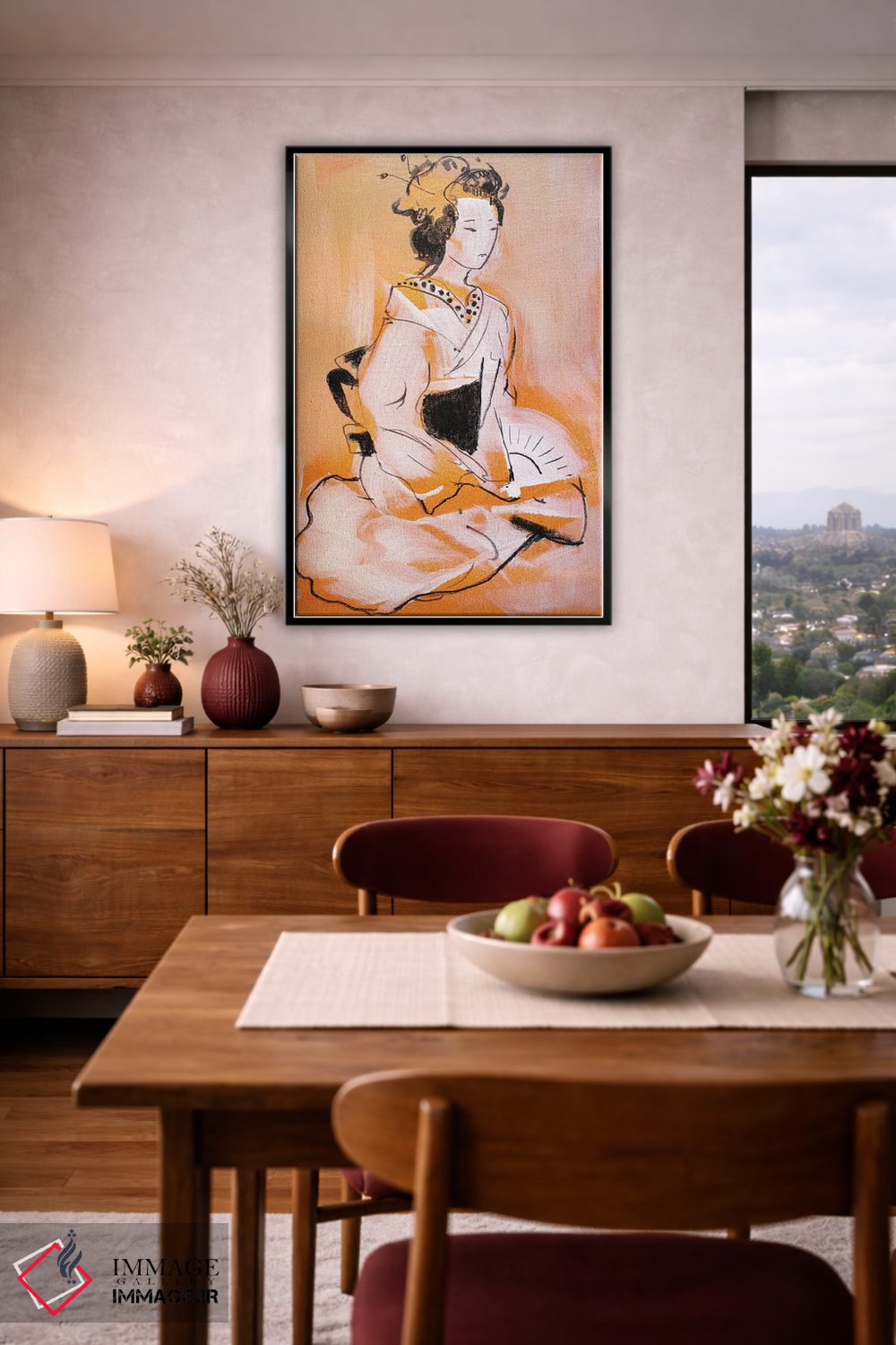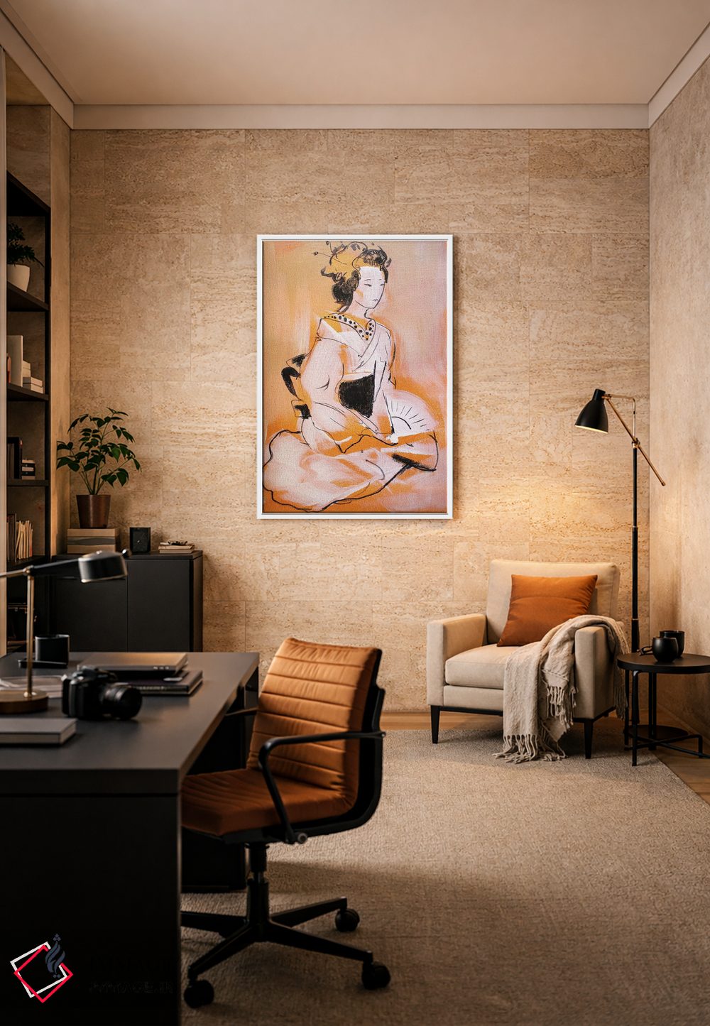 «گیشای کوچک V» اثرِ «مارینا دل پوزو» با حالوهوای آسیایی، کنار نور ملایم و متریالهای طبیعی (چوب/سنگ) بسیار خوشفرم دیده میشود.