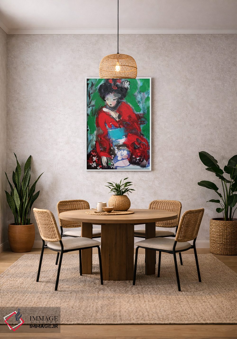 ساختار بوم گالری ایماژ طوری است که اثر روی دیوار «پرداختشده» و حرفهای دیده شود—نه پرزرقوبرقِ بیپایه؛ بلکه دقیق و خوشپرداخت. بافت ظریف کنواس کمک میکند حس اثر هنری را در نگاه نزدیک نگه میدارد و نتیجه را یکدستتر میکند. بافت ظریف کنواس کمک میکند باعث میشود سطح کار زندهتر دیده شود و در چیدمانهای مدرن و کمینهگرا خیلی خوب مینشیند. برای سفارش اندازه یا قاب متفاوت، تیم ایماژ راهنمایی میکند تا انتخاب نهایی هماهنگتر باشد؛ برای هدیهی هنری هم انتخاب محترمانهای است.