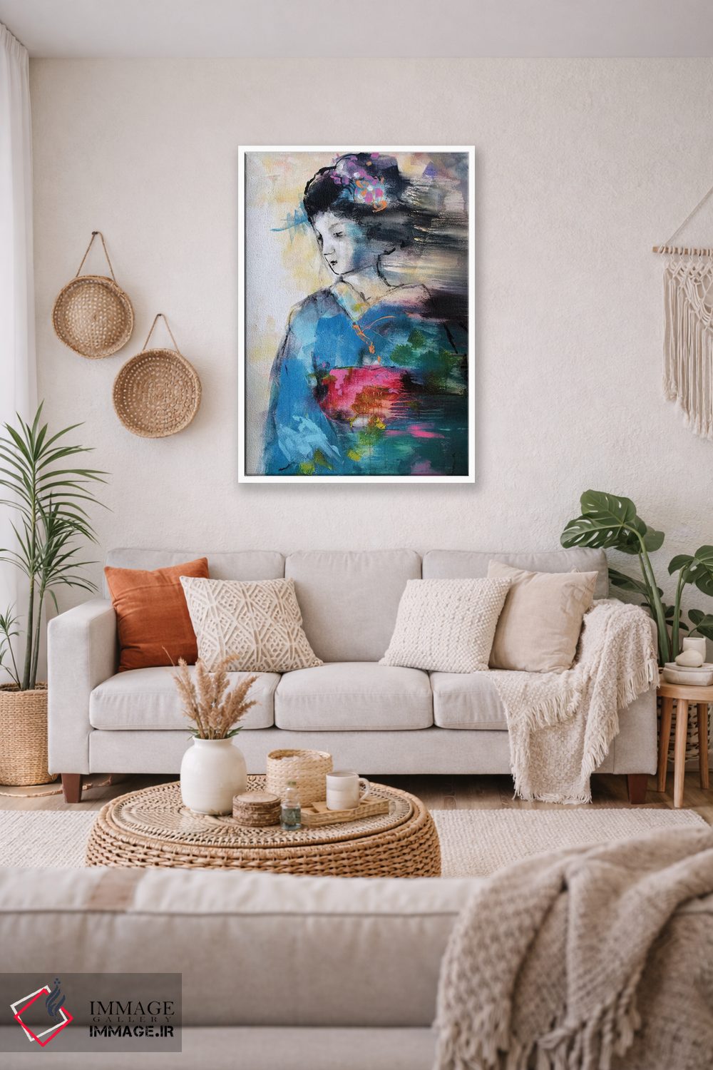 بوم گالری ایماژ نسخهی چیدماناتیوِ سطحبالا از یک اثر هنری است. روی کنواس سفیدِ یکدست و بدون اسید با چاپ هنریِ دقیق (Giclée) برای گذارهای نرمتر و وضوح بالاتر با رنگهای آرشیوی UltraChrome HDR برای طبیعیتر دیده شدن رنگها روی دیوار؛ این ترکیب باعث میشود گذارهای رنگی نرمتر و بافتها خواناتر شوند. اسمبل تمیز و آمادهی نصب؛ کشیدگی استاندارد روی کلاف و یراق مناسب. برای پروژههای معماری داخلی یا محیطهای خاص، همکاری حرفهای را با ایماژ میتوان آغاز کرد.