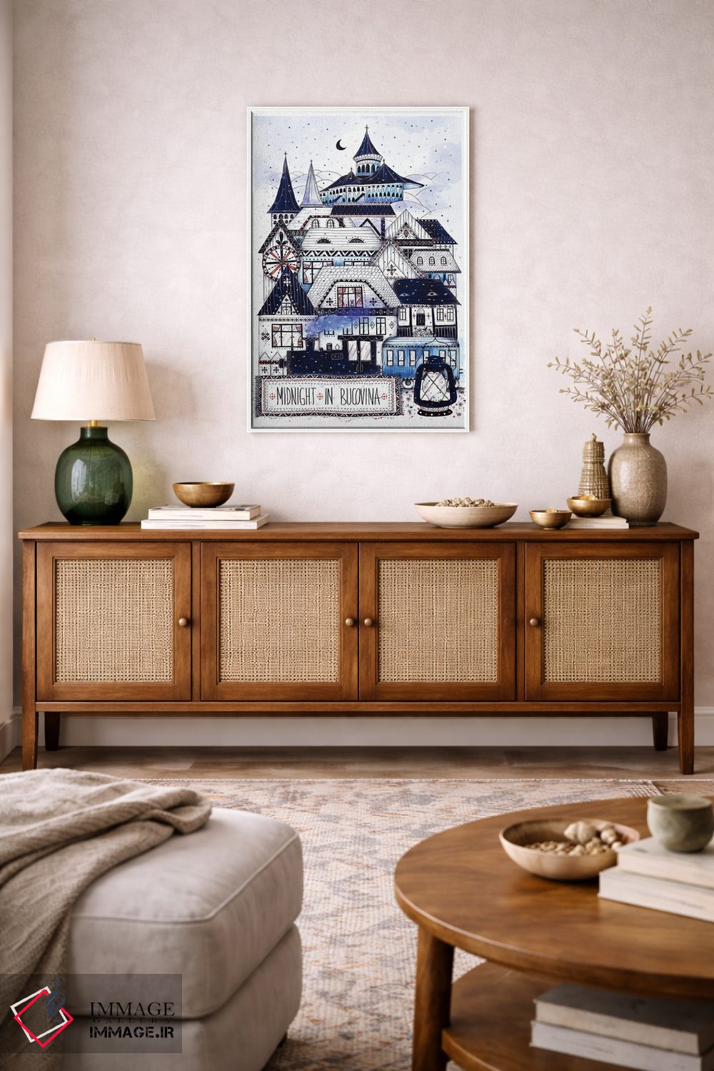 این اثر با عنوان «نیمهشب در بوکووینا (منطقهای در رومانی/اوکراین)» اثرِ «مادالینا تنتارئانو» حس نظم و استحکام به فضا بدهد؛ برای استودیوهای طراحی انتخابی خوشسلیقه است. فضا را شلوغ نمیکند؛ فقط ساختار میدهد.