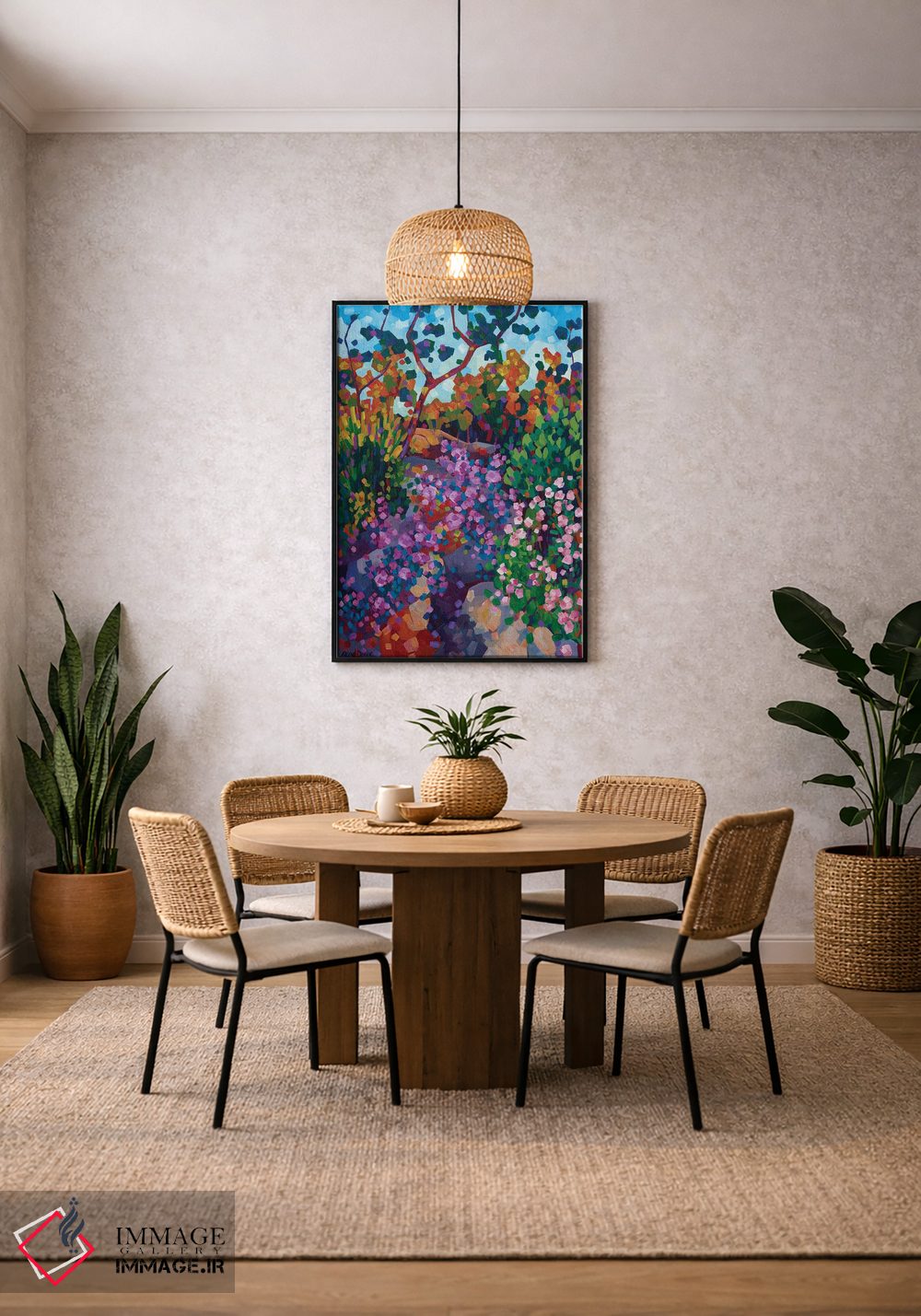 بوم گالری ایماژ نسخهی چیدماناتیوِ حرفهای از یک اثر هنری است؛ روی کنواس بدون اسید با بافت ظریف و یکنواخت با چاپ هنریِ دقیق (Giclée) برای گذارهای نرمتر و وضوح بالاتر و رنگدانههای آرشیوی Epson UltraChrome HDR، خروجی، یک «تابلو» است نه یک چاپ ساده. آمادهی نصب روی دیوار؛ کشیدگی دقیق روی چهارچوب و ارائهی مرتب.