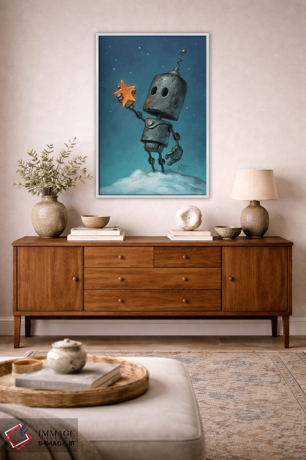 بوم گالری ایماژ نسخهی چیدماناتیوِ حرفهای از یک اثر هنری است. روی کنواس بدون اسید با بافت ظریف و یکنواخت با چاپ هنری به استاندارد جیکلی (Giclée) با جوهرهای آرشیویِ حرفهای برای لایههای رنگی خواناتر؛ نتیجه، تصویرسازیِ دقیقتر و حس ارائهی گالریوار است. کلافکشی مرتب و یراق نصب استاندارد، تجربهی نصب را ساده میکند.